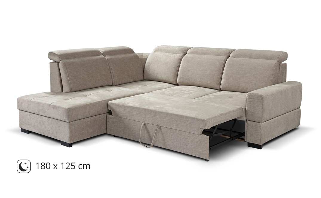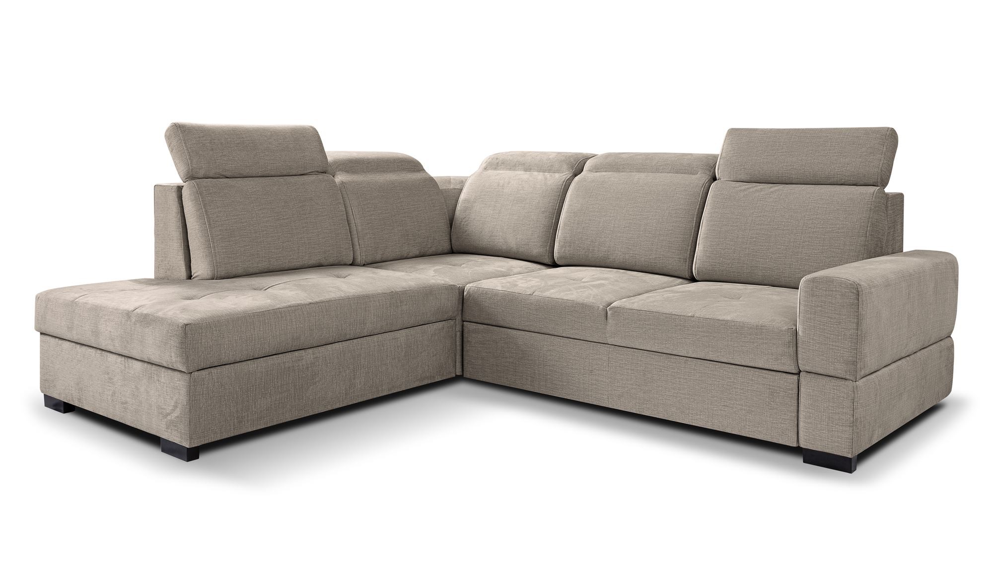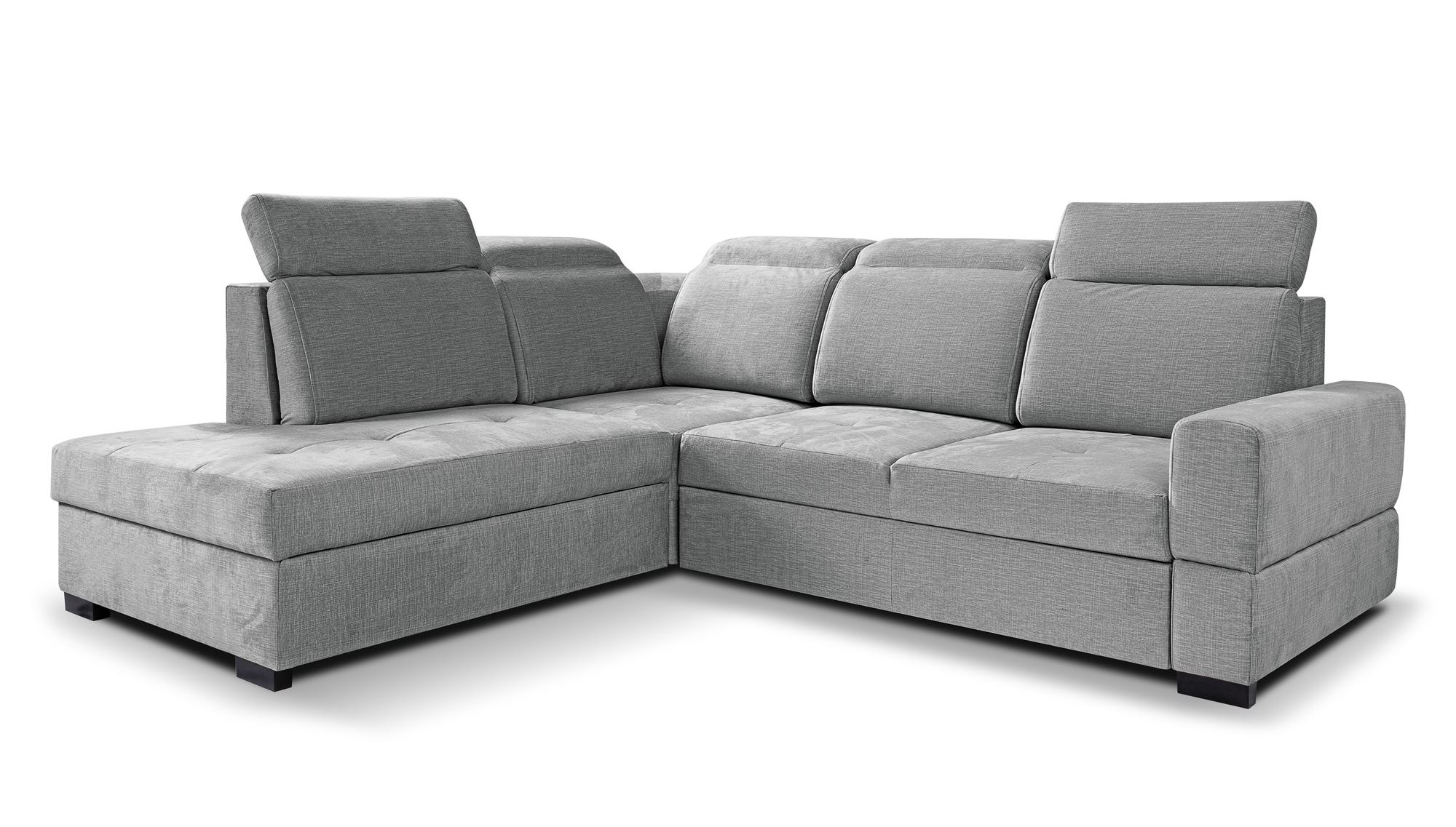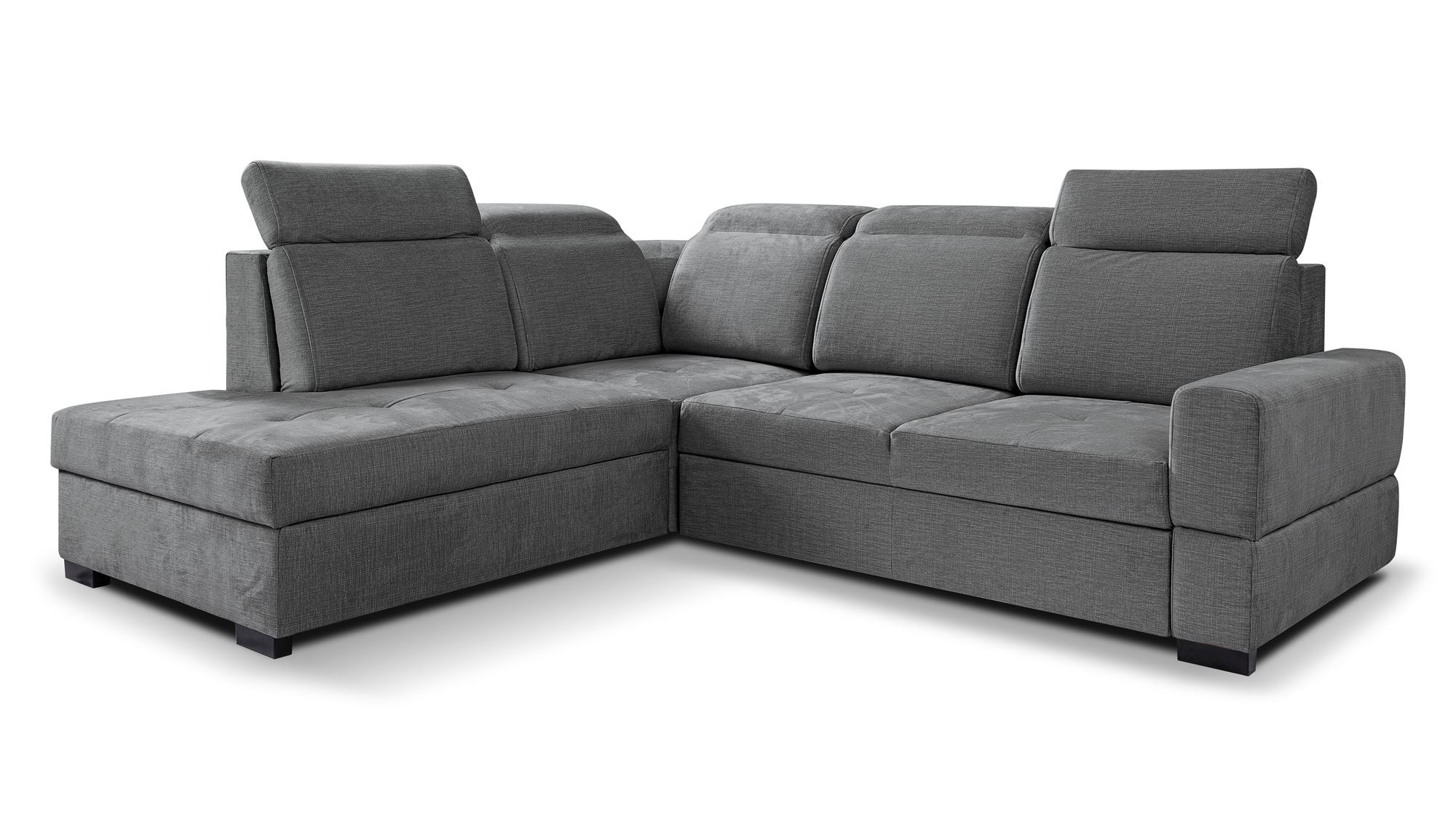 Narożnik L z funkcją spania, tapicerowany, z regulowanym zagłówkiem - AXEL