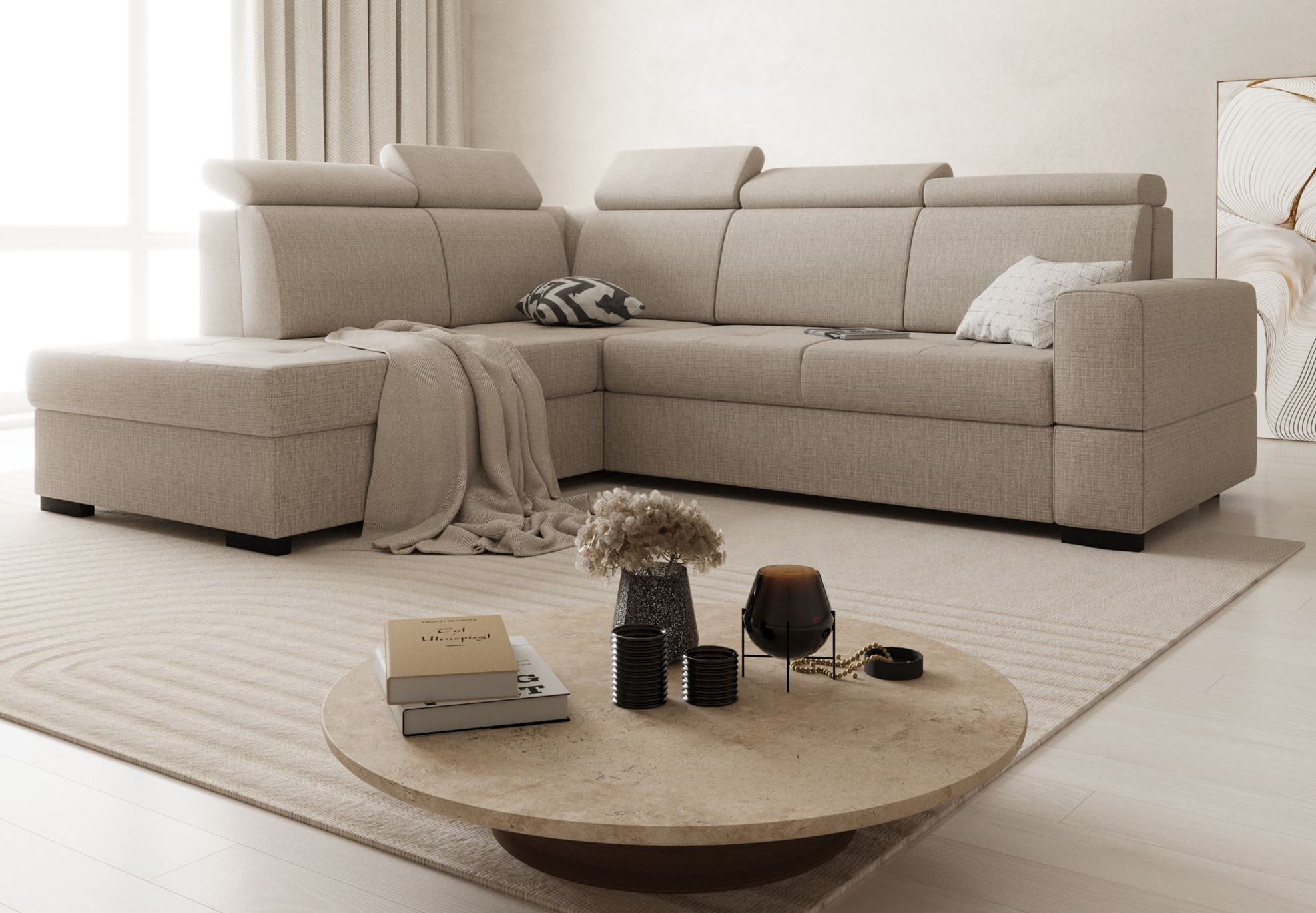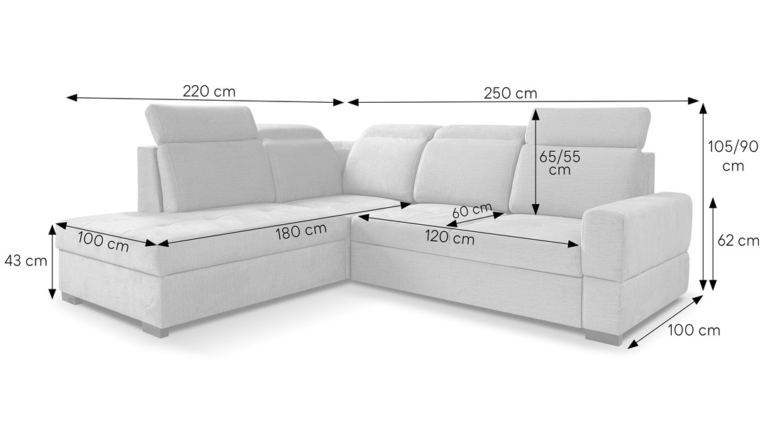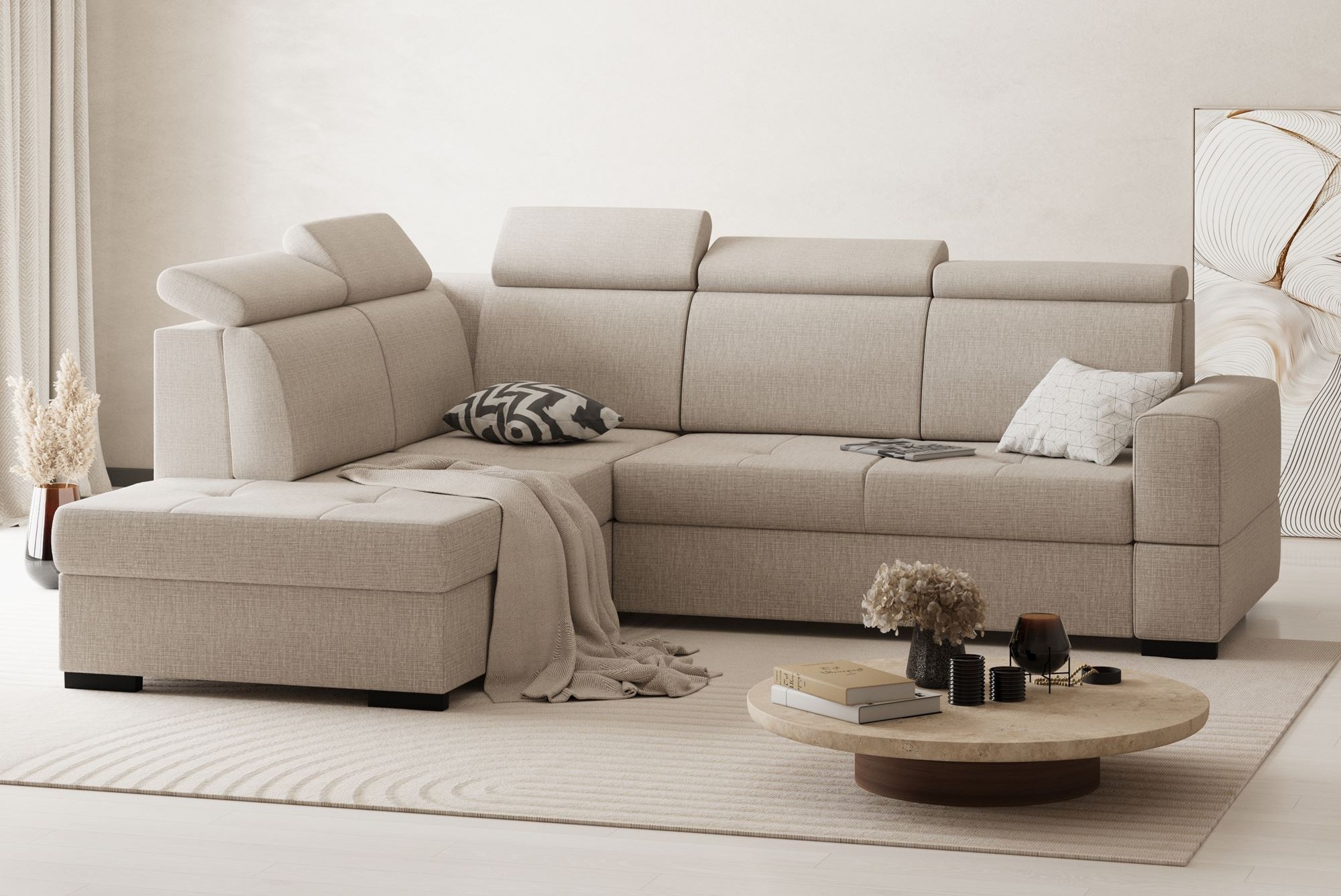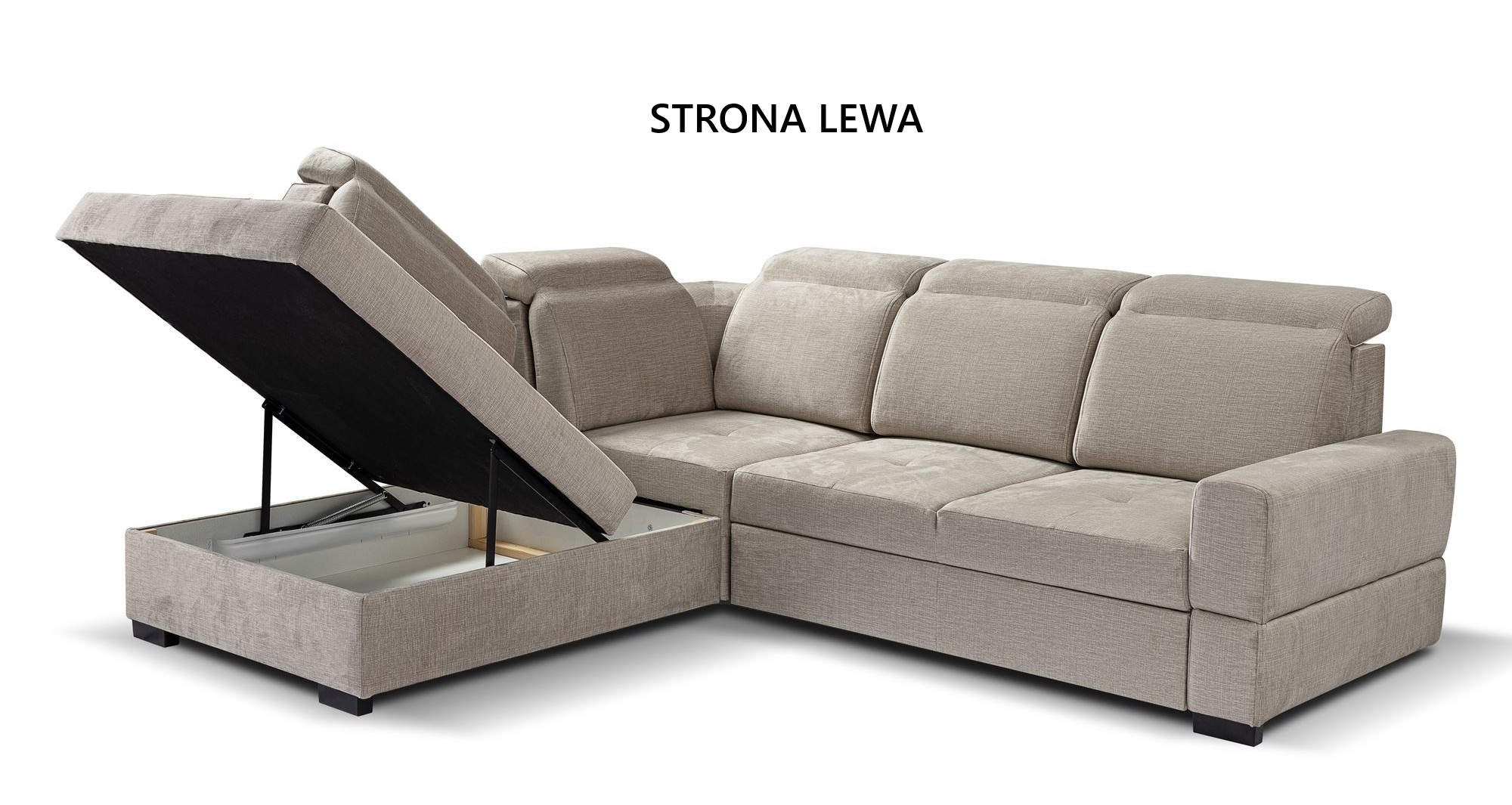 Narożnik L z funkcją spania, tapicerowany, z regulowanym zagłówkiem - AXEL