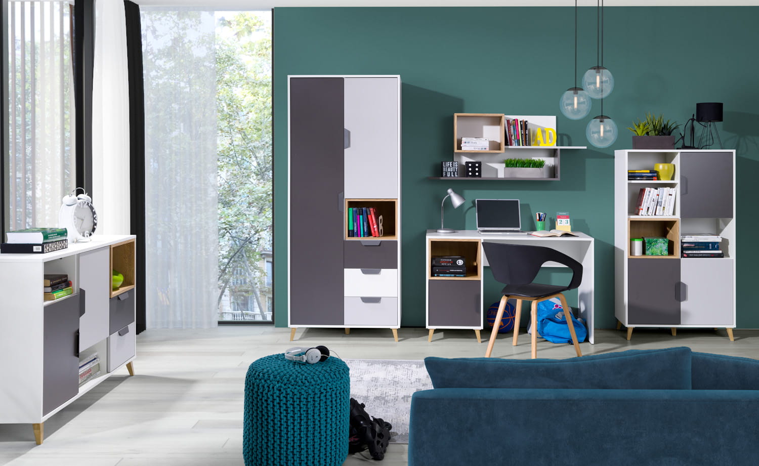 - BIAŁY/GRAFIT/SZARY/DĄB LEFKAS