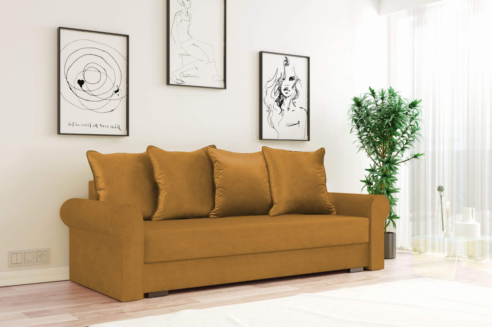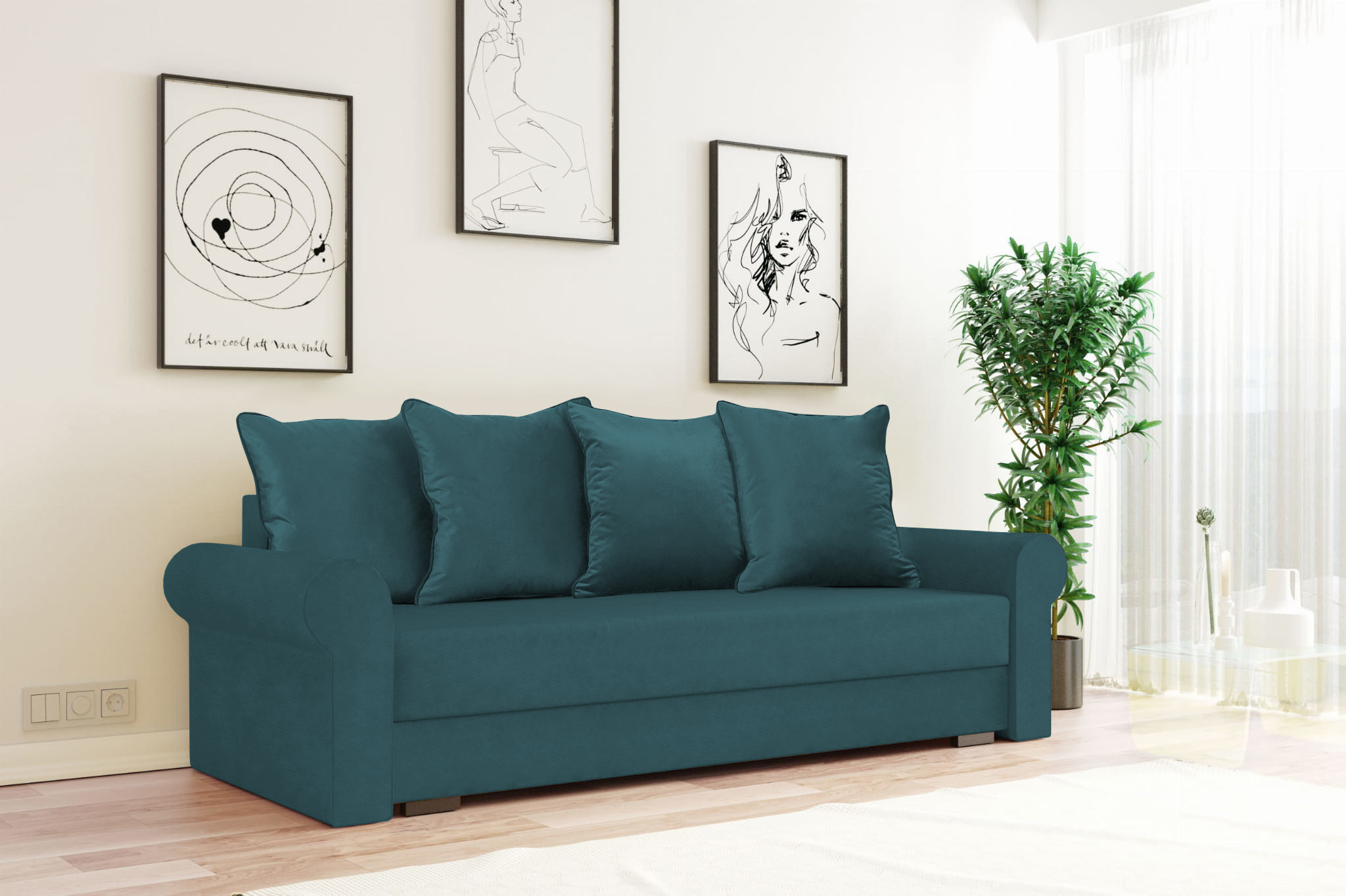 - Funkcje użytkowe takie jak siedzisko oraz powierzchnia spania wykonana została ze sprężyny typu Bonell oraz pianki wysokoelastycznej o sprężystości T-30 - takie połączenie gwarantuje komfortowe użytkowanie mebla przez długie lata.