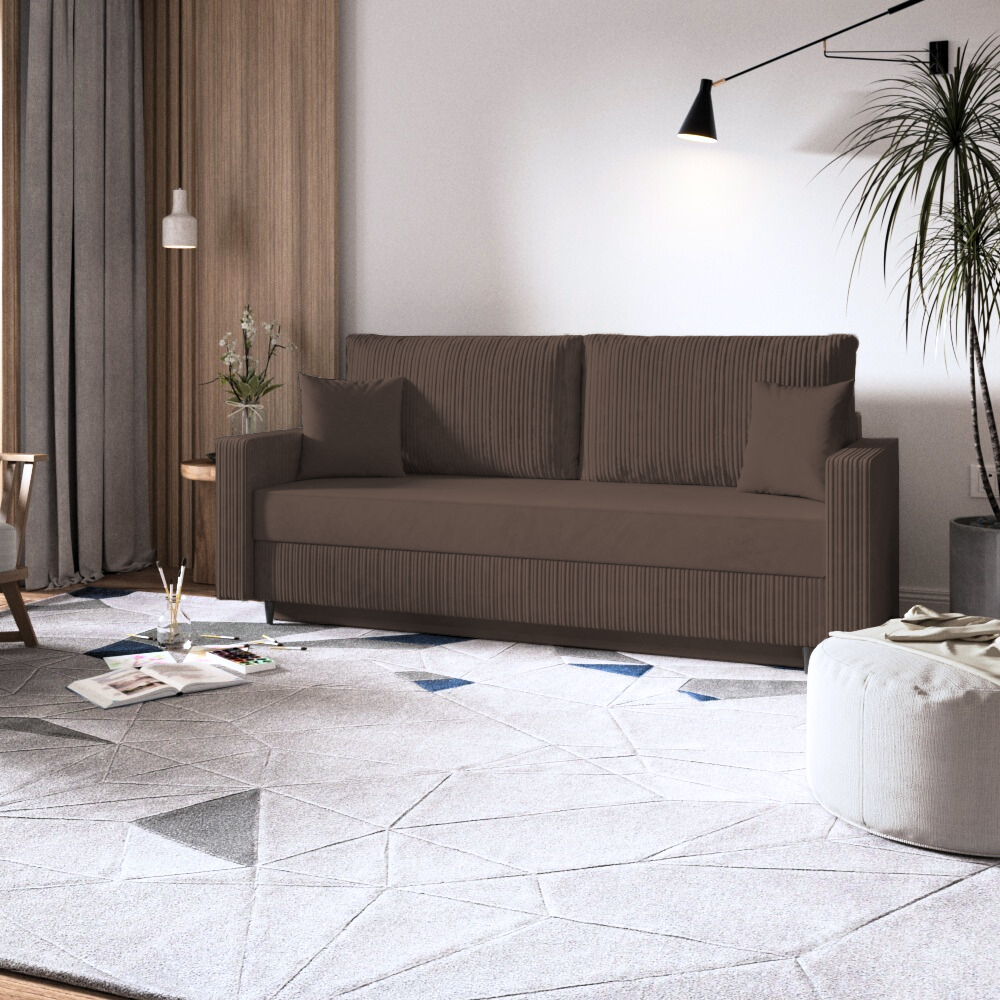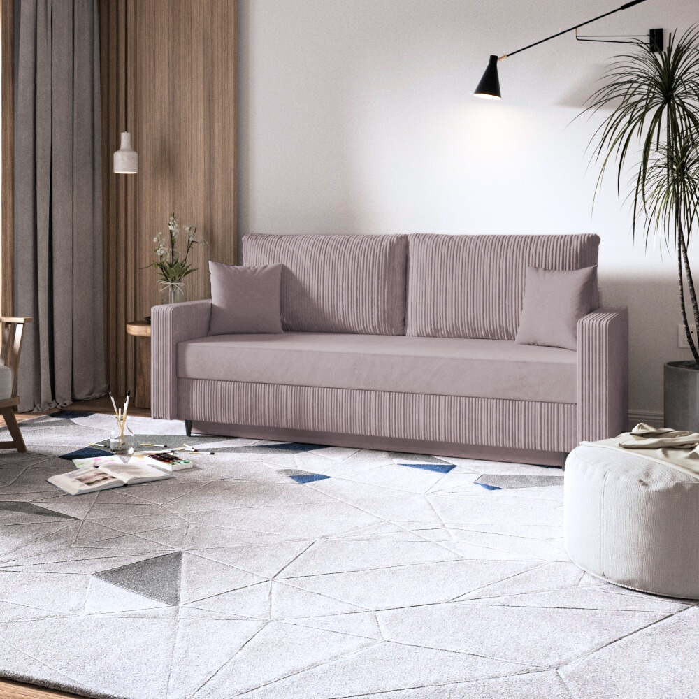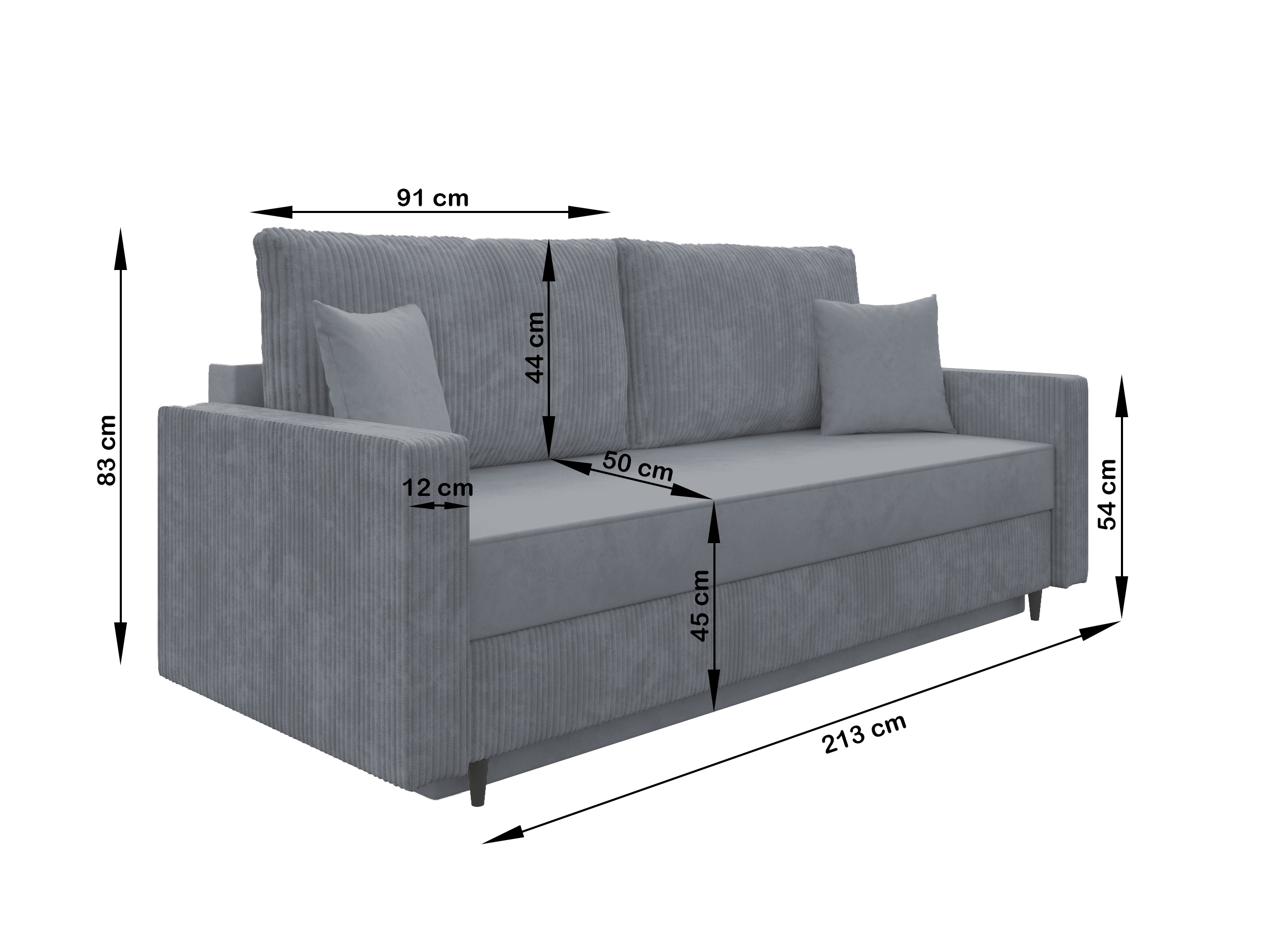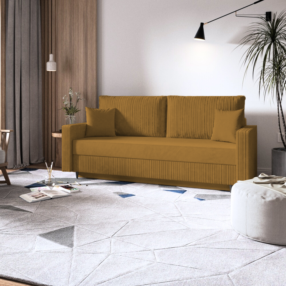 - Kanapa Marin oferuje także funkcjonalne rozwiązania – posiada przestronną powierzchnię do spania oraz praktyczny pojemnik na pościel, który ułatwia organizację i pozwala na maksymalne wykorzystanie miejsca.