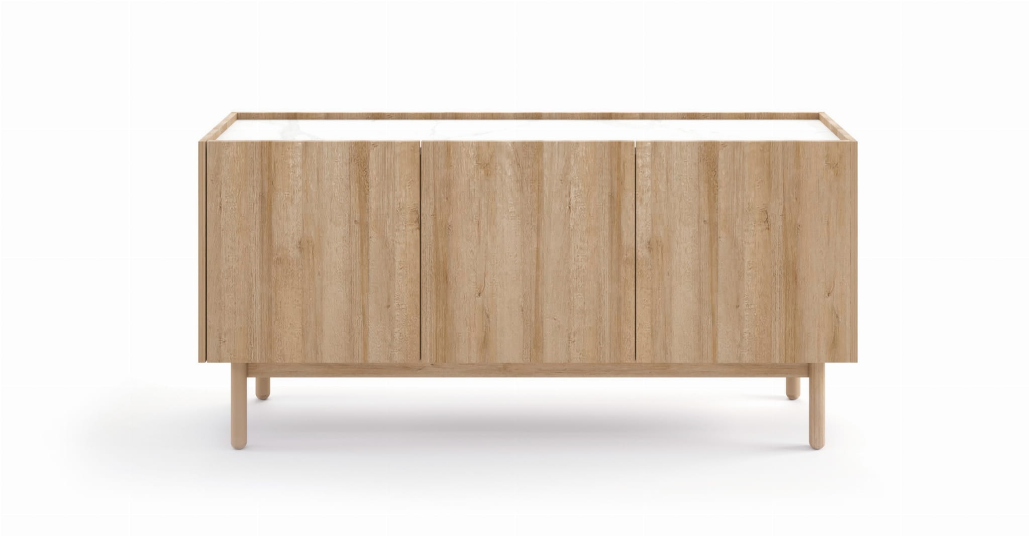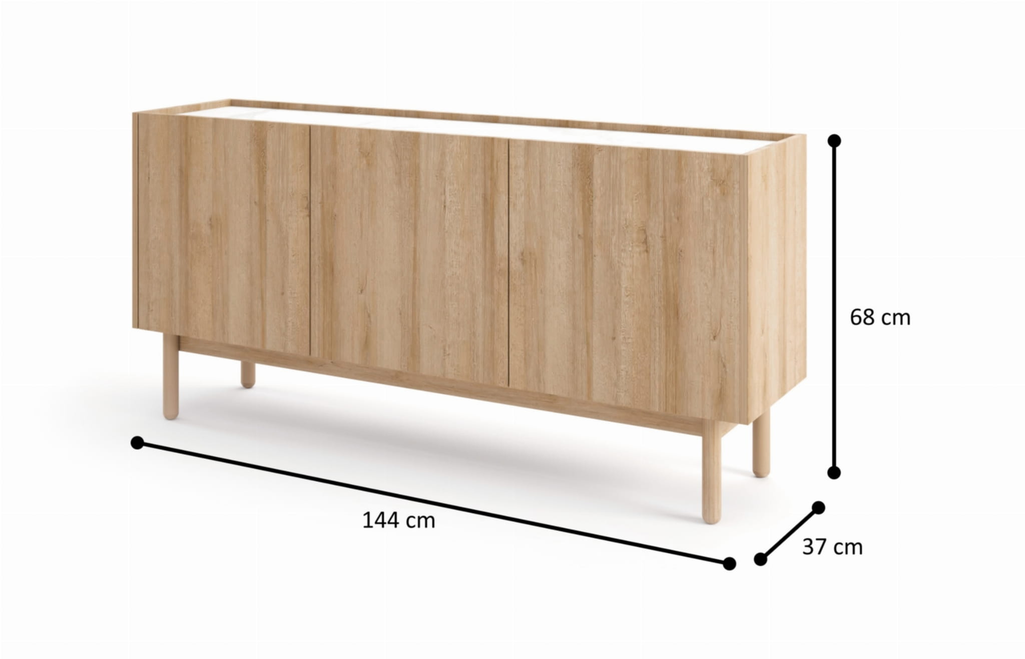 - Kolor systemu do: Dąb Riviera w połączeniu z blatami Marmur Bianco.