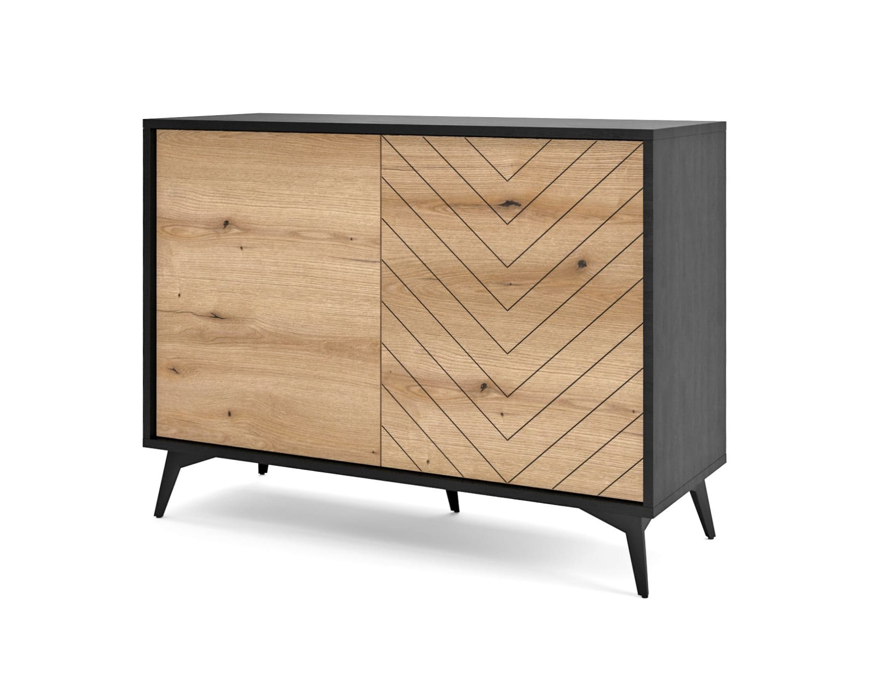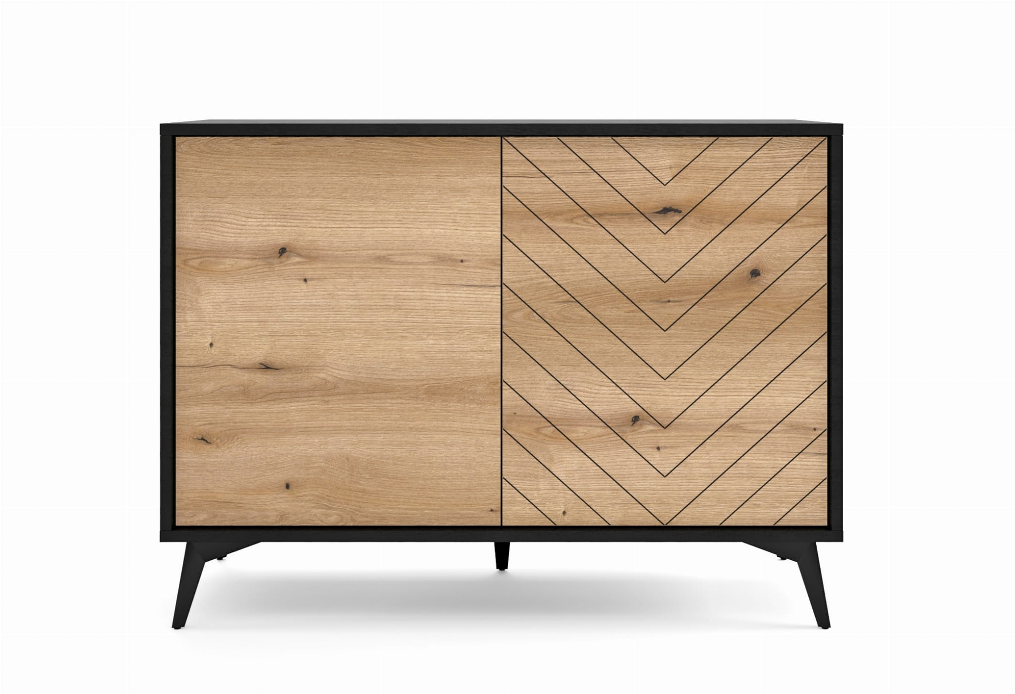 - Komoda wykonana z płyty laminowanej o grubości 16mm, nogi metalowe w kolorze czarnym - wysokość 14 cm.