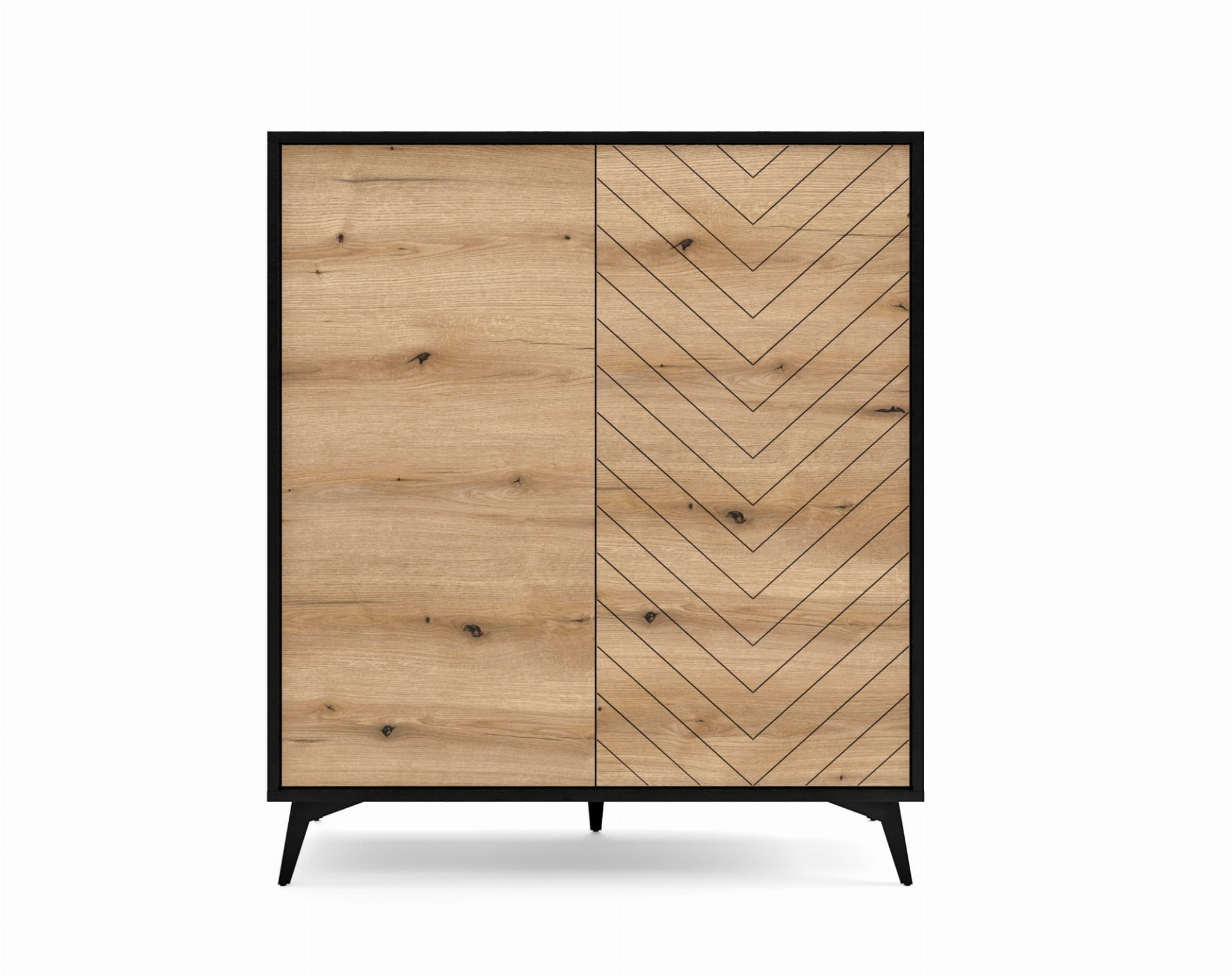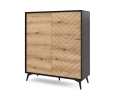 - Komoda wykonana z płyty laminowanej o grubości 16mm, nogi metalowe w kolorze czarnym - wysokość 14 cm.