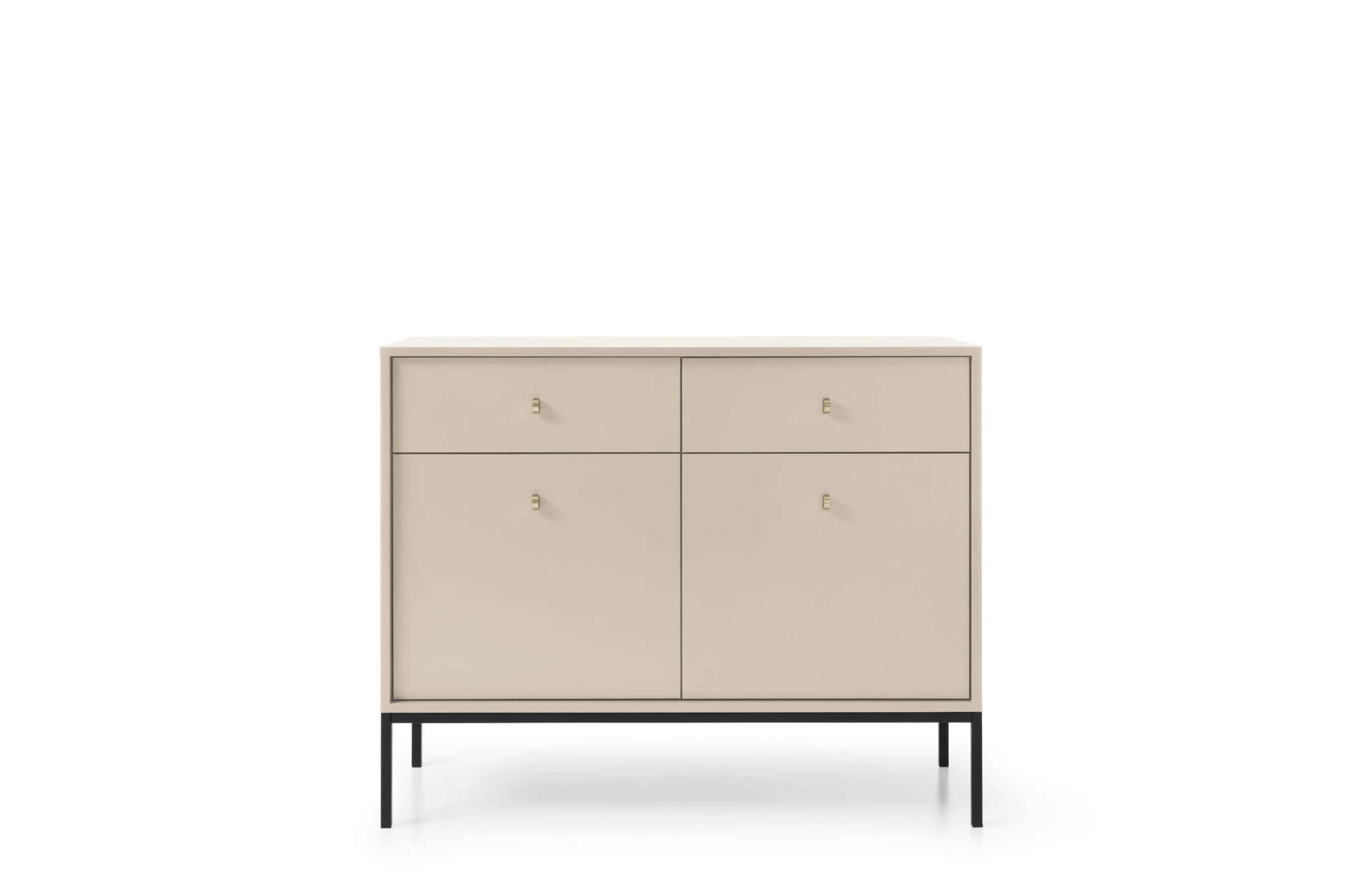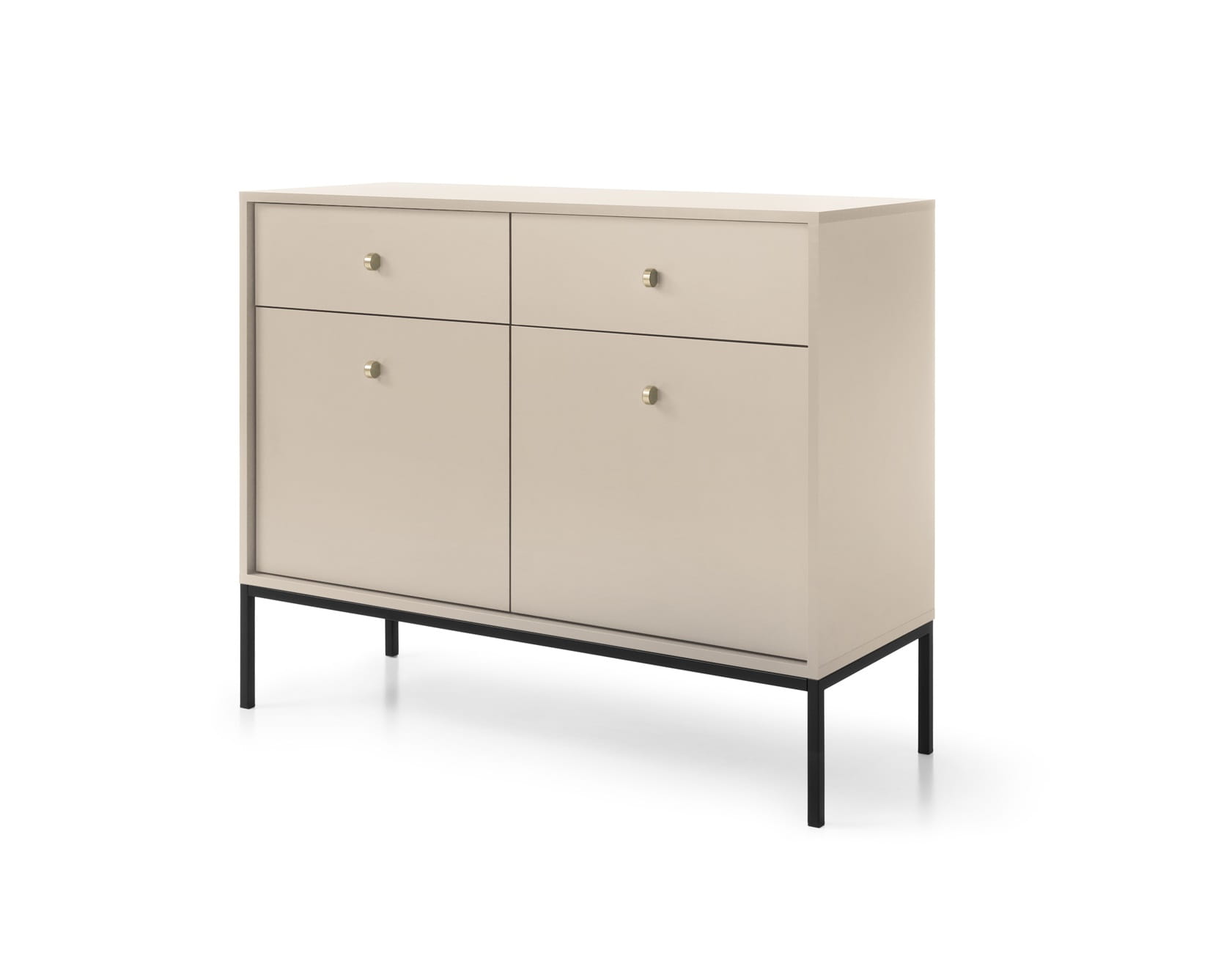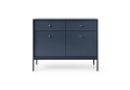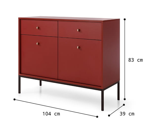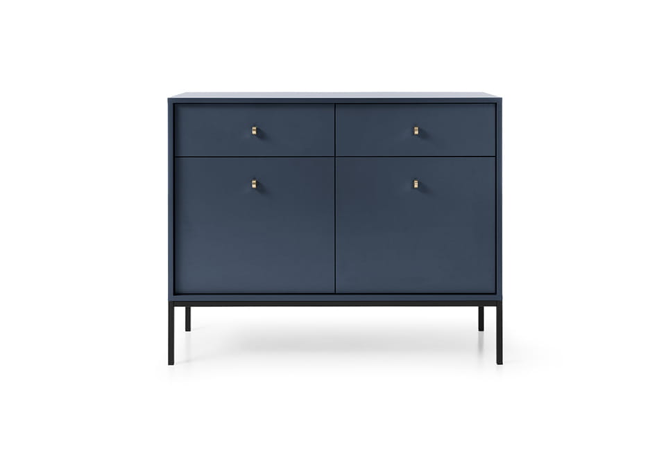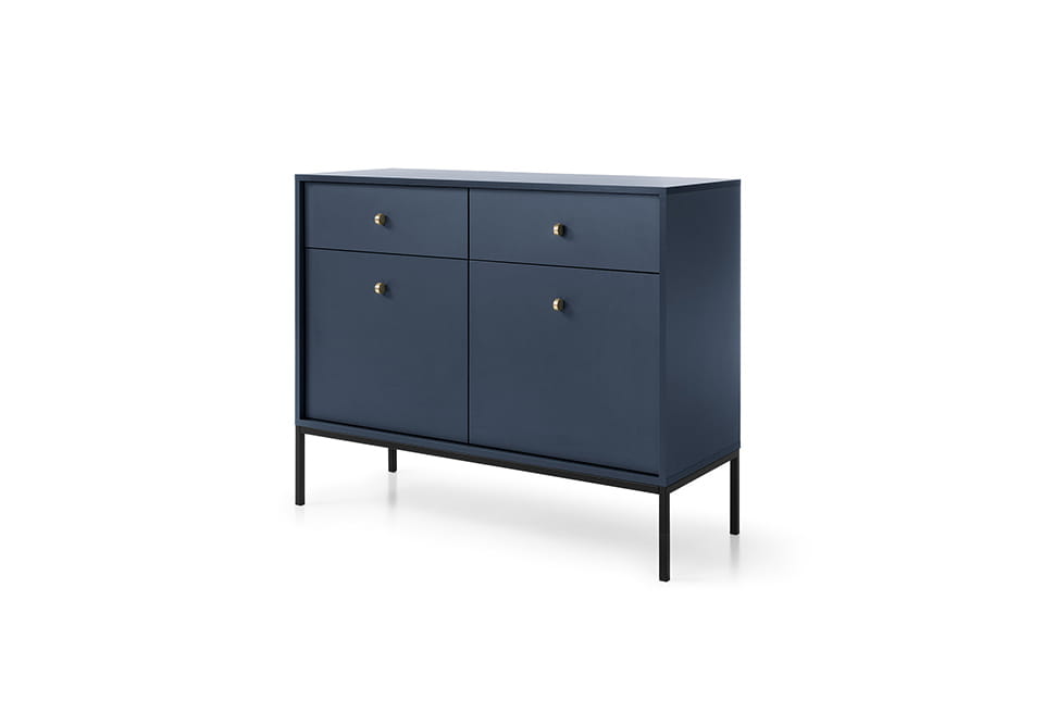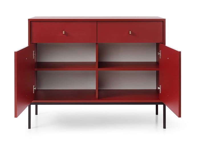 - Komoda posiada 2 drzwi oraz 2 szuflady, w swoim wnętrzu posiada z obu stron półkę
