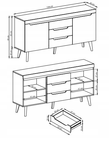 - Komoda posiada 2 drzwi oraz 3 szuflady , w swoim wnętrzu posiada z obu stron półkę
