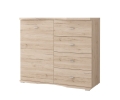 - Komoda Renada została wykonana z płyty laminowanej o grubości 16 mm. Wszystko to w połączeniu kolorów san remo sand + wstawka cappuccino, co nadaje zestawowi elegancję i styl.