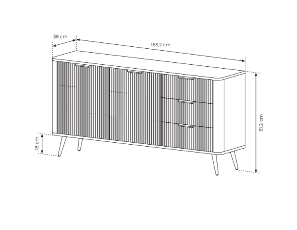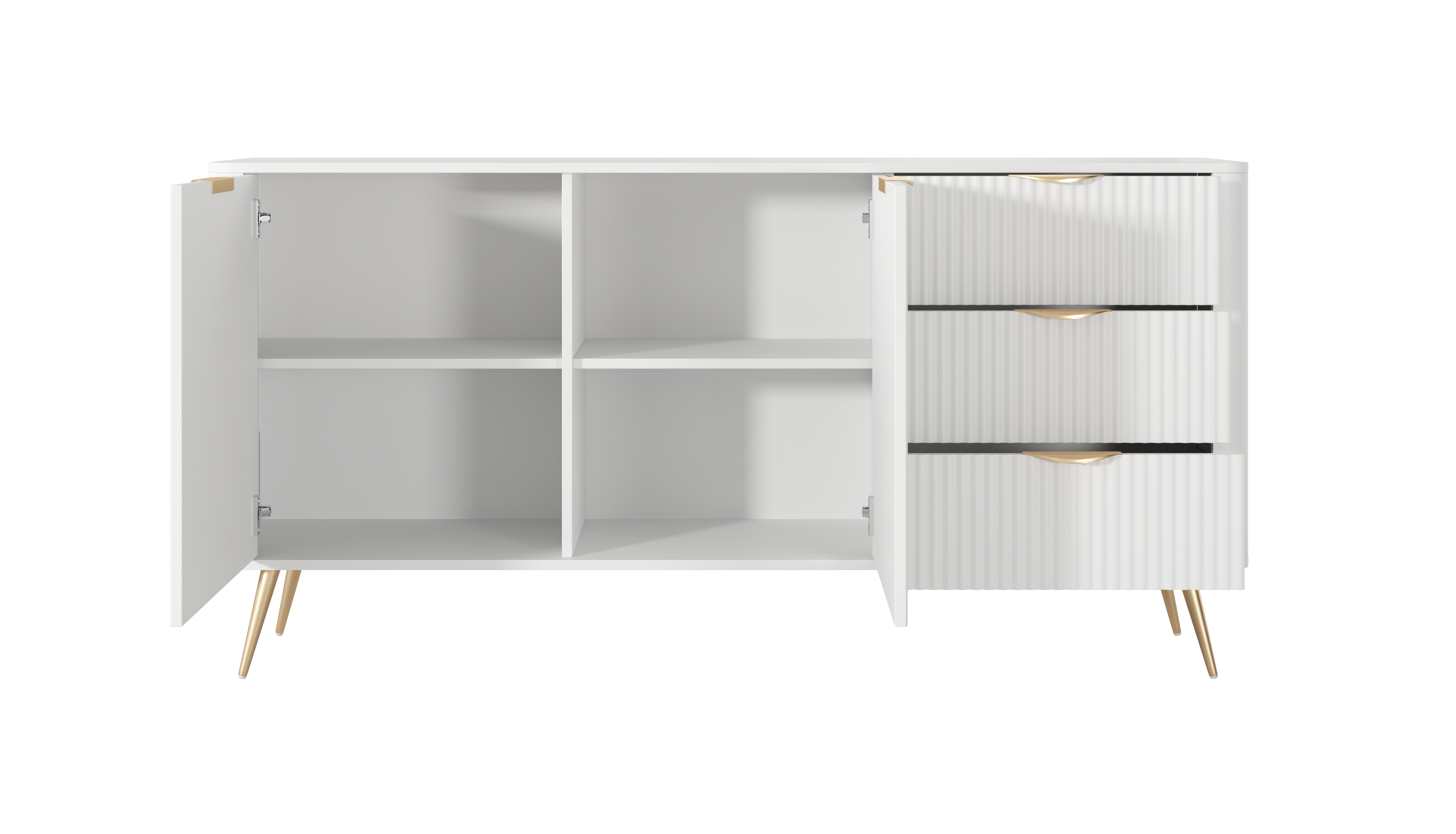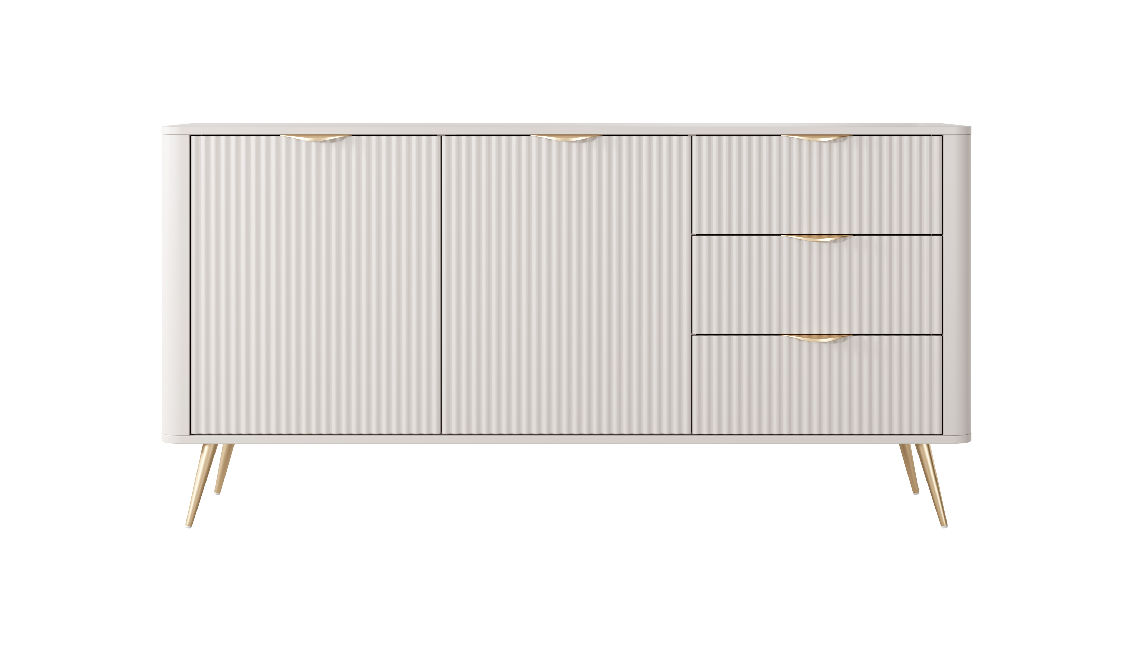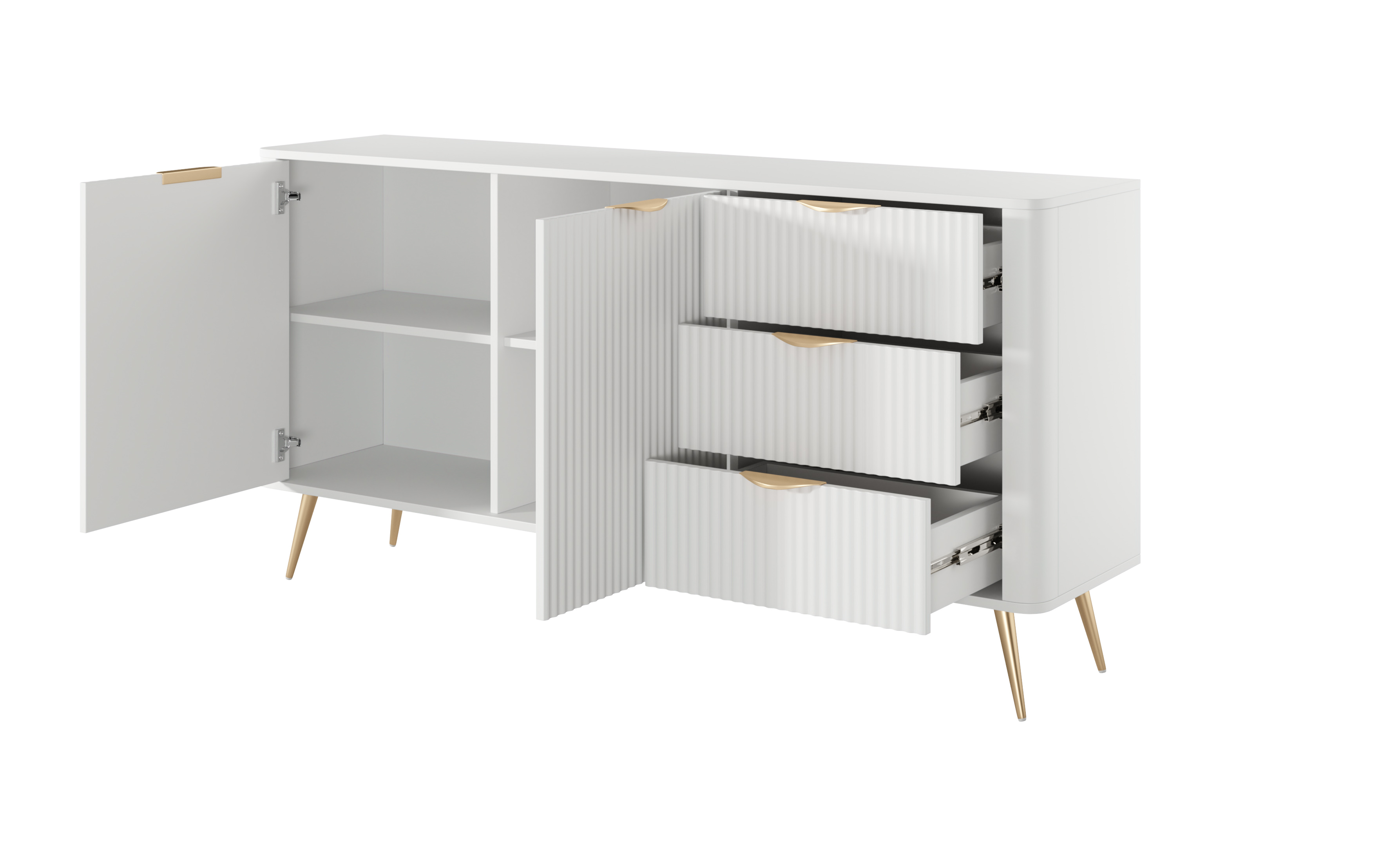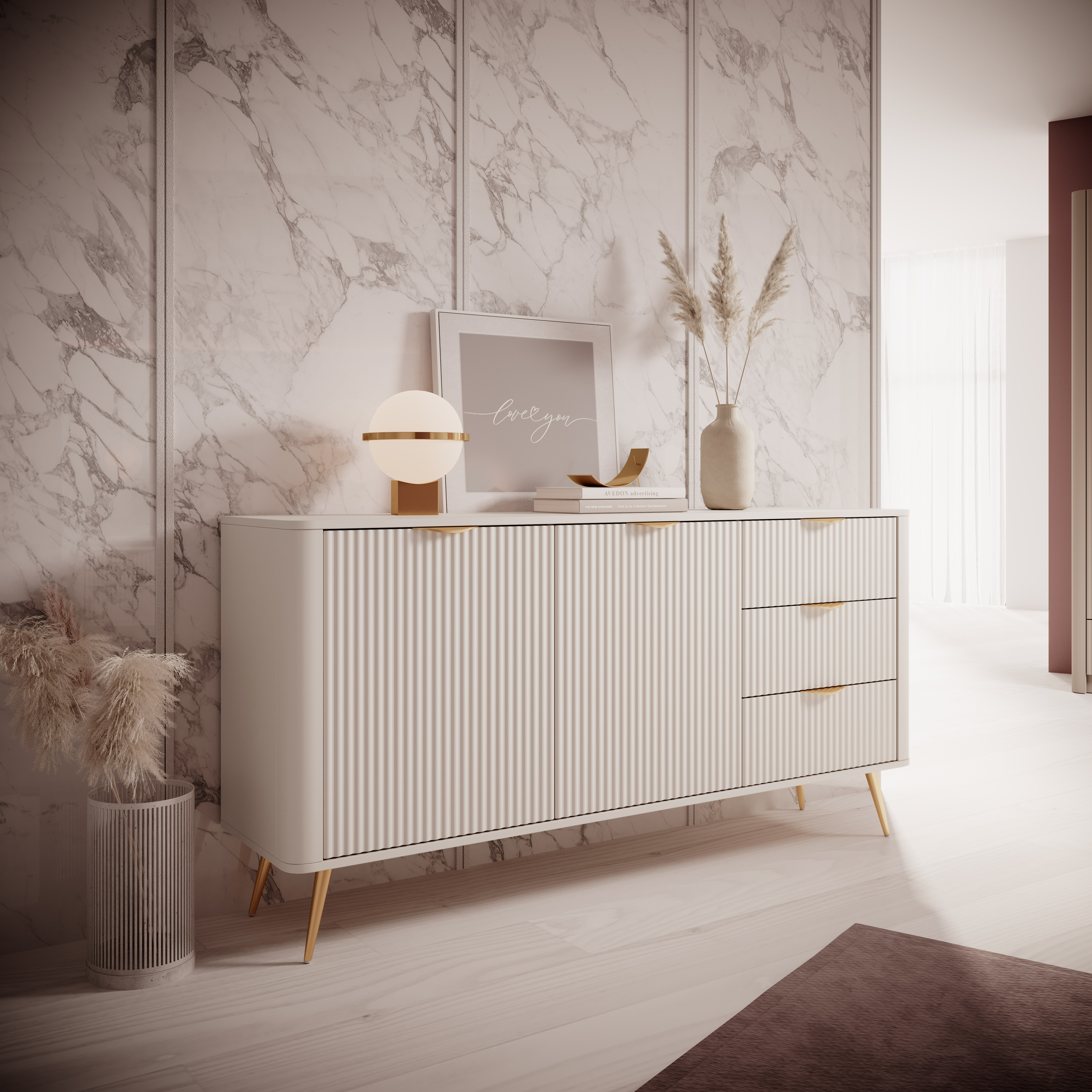 Komoda Lante 163 cm - ryflowana, zaokrąglone boki, z szufladami, nowoczesna