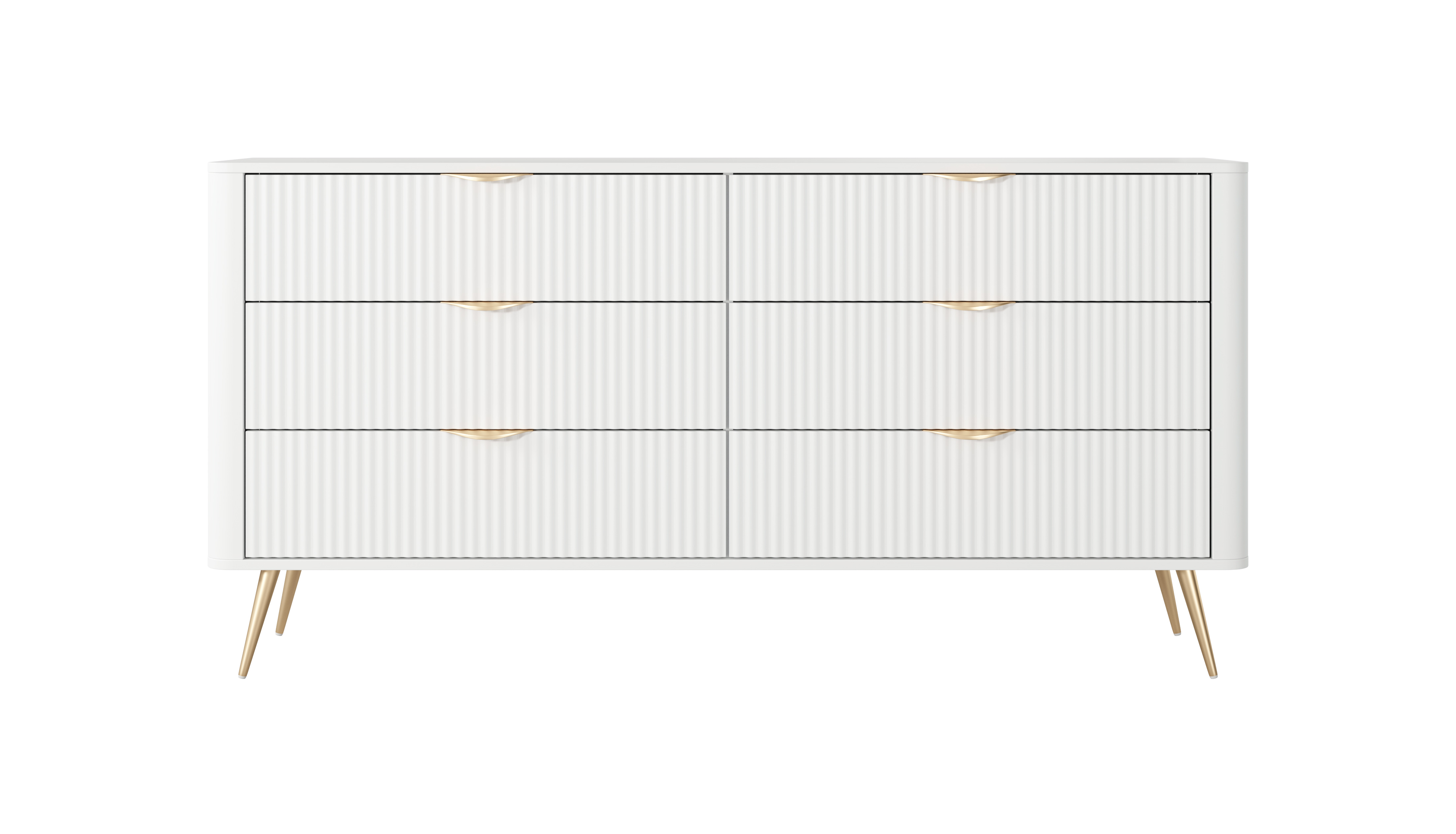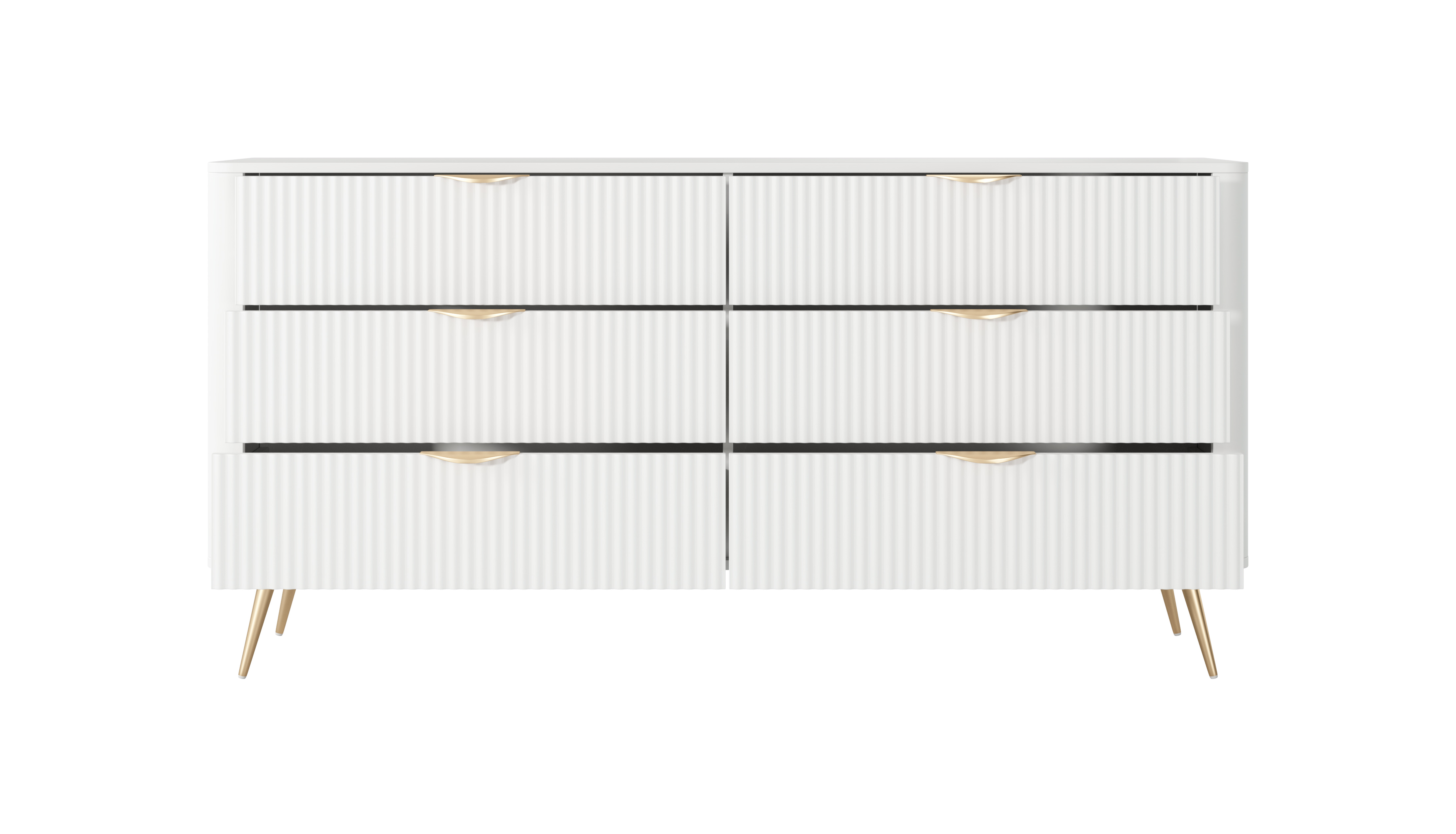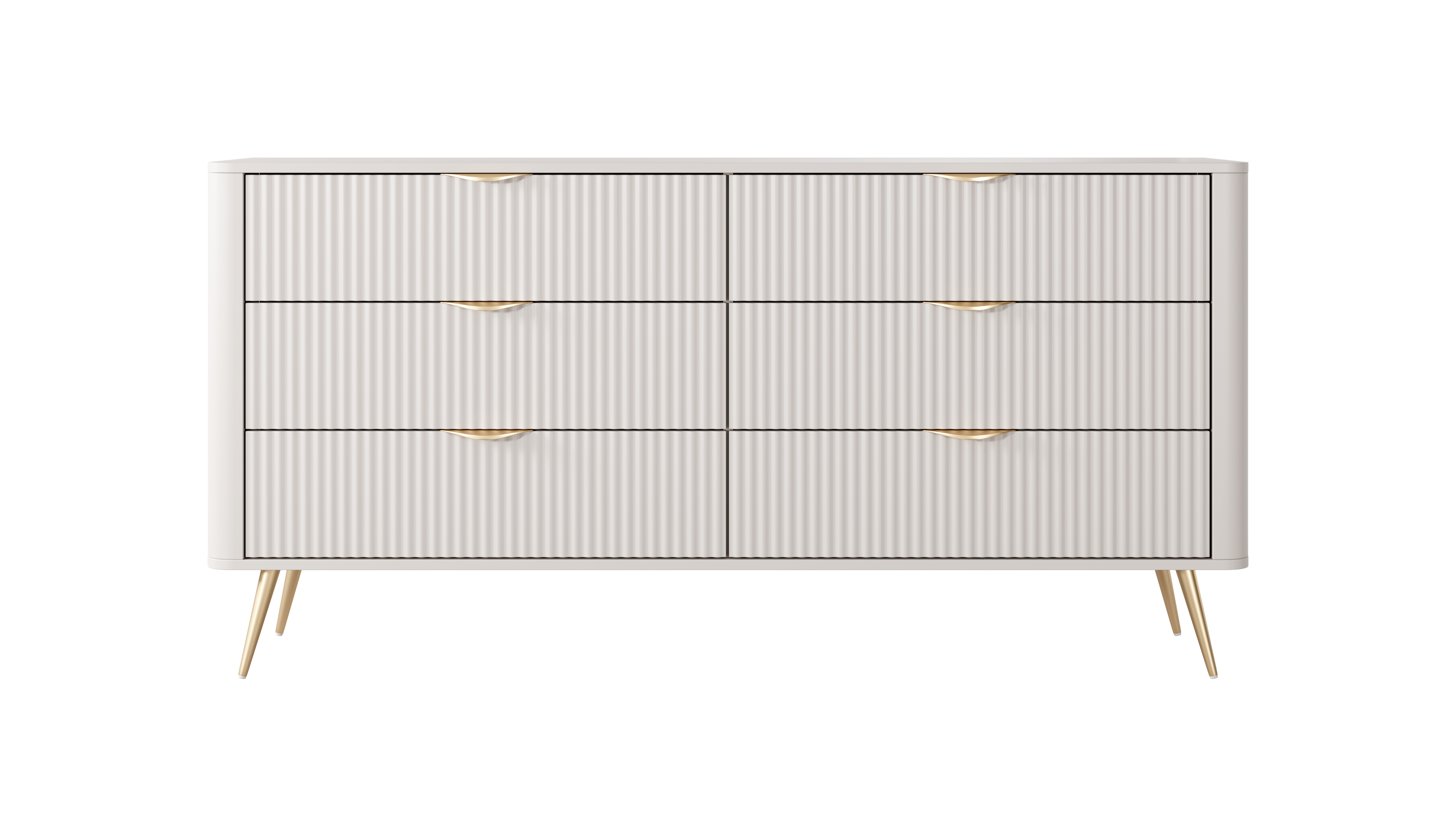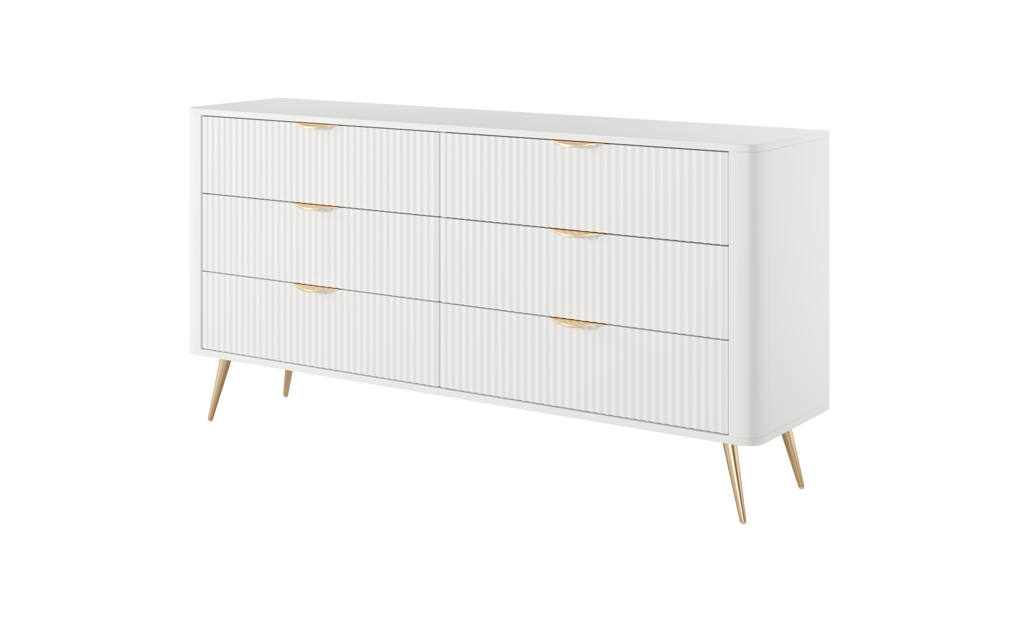 Komoda z szufladami LANTE 163 cm - MDF ryflowana, zaokrąglone boki, z szufladami, nowoczesna