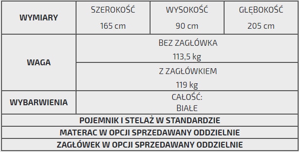 - Cena dotyczy łóżka + stelaż + pojemnik na pościel