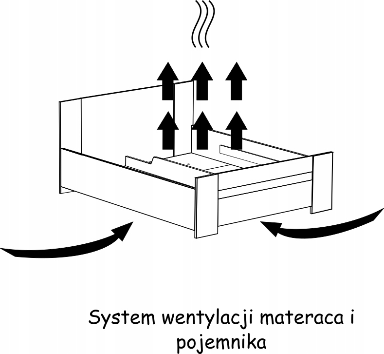 - Łóżko posiada system wentylacji materaca oraz pojemnika