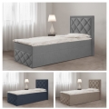 - Praktyczne łóżko pojedyncze wykonane z wysokiej jakości materiałów, które posiada pojemnik na pościel.