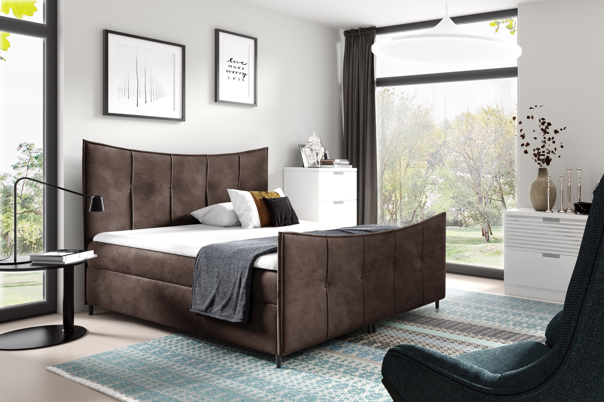 - Łóżko Boxspring zachwyca swoją elegancją i subtelnością.