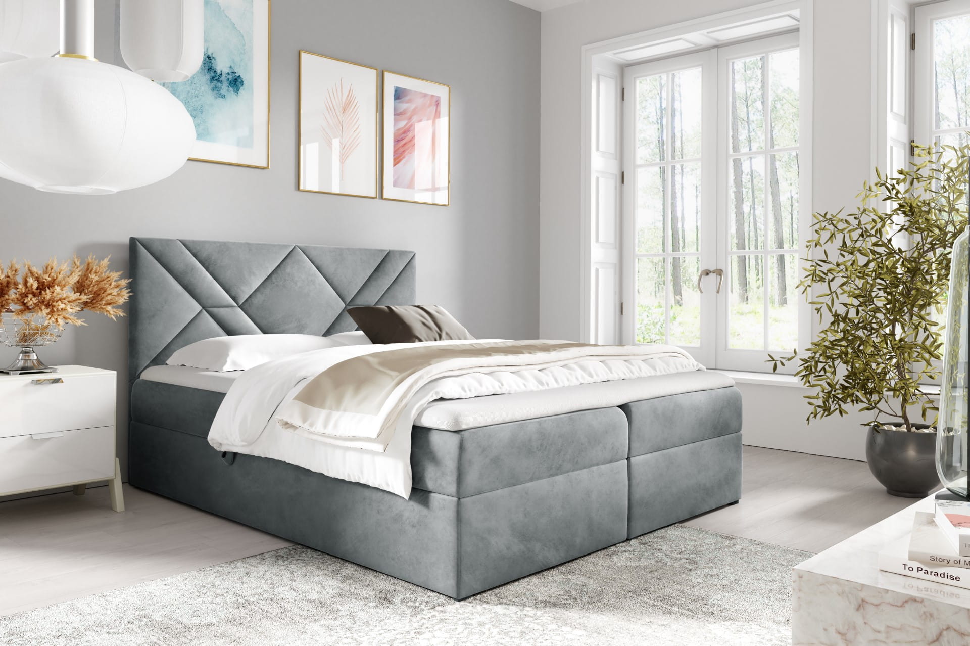 - Łóżko Boxspring zachwyca swoją elegancją i subtelnością.
