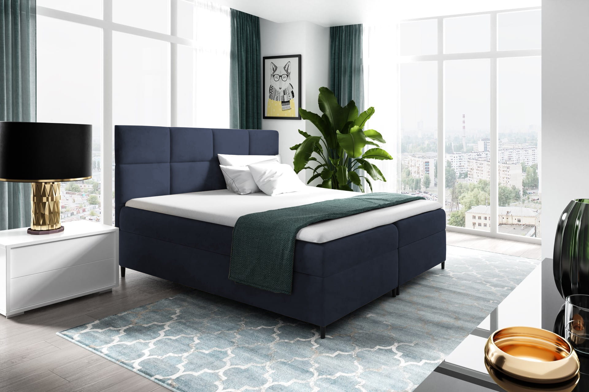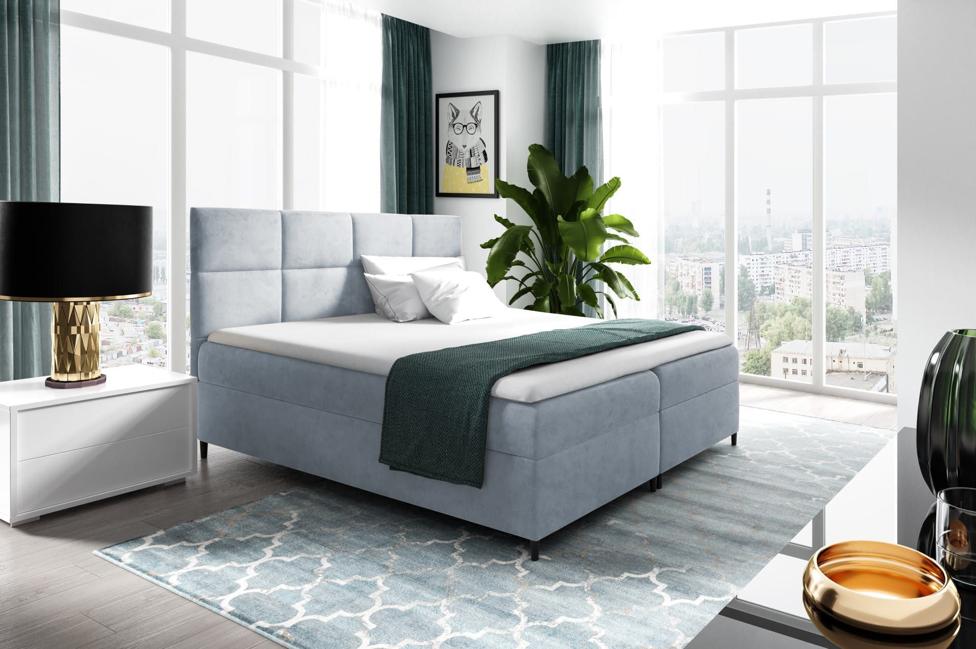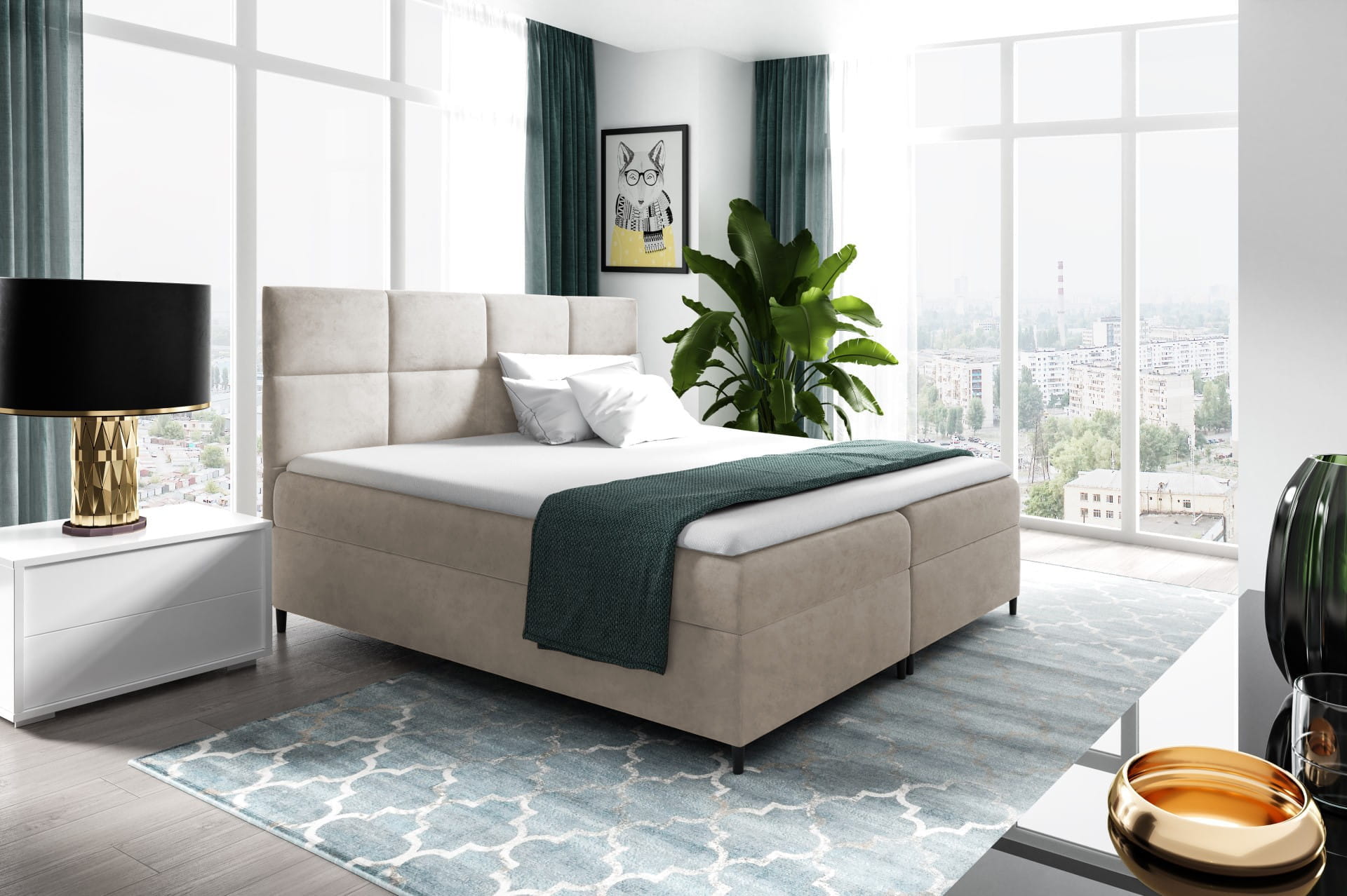 - Łóżko Boxspring zachwyca swoją elegancją i subtelnością.