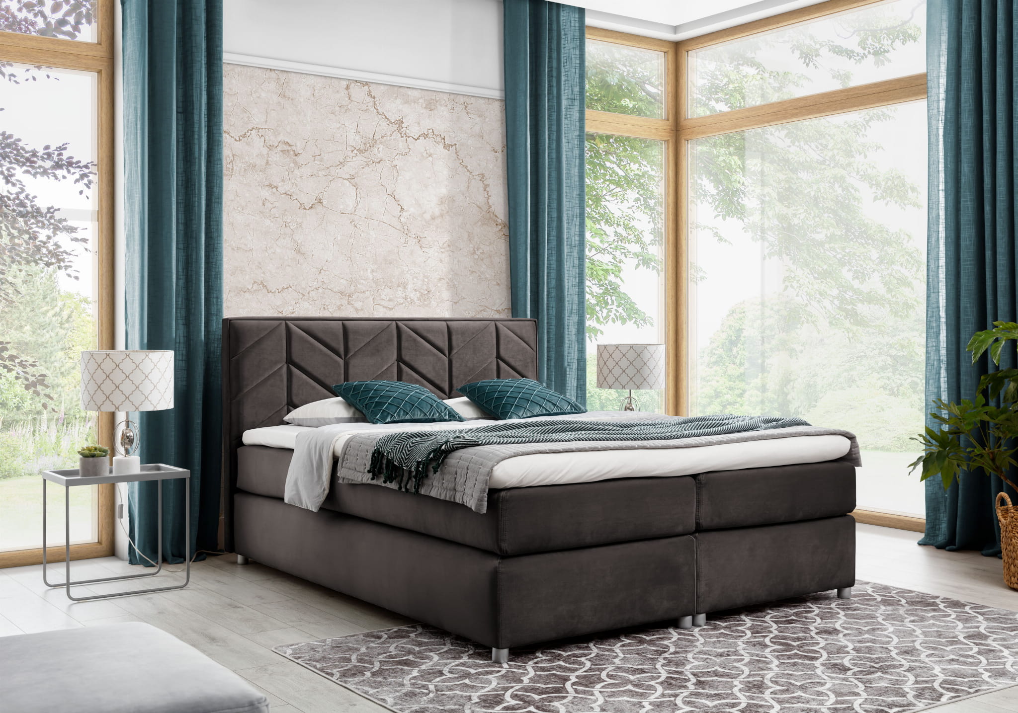 - Boxspring wykonany został z ciekawą formą zagłówka w postaci jodły.
