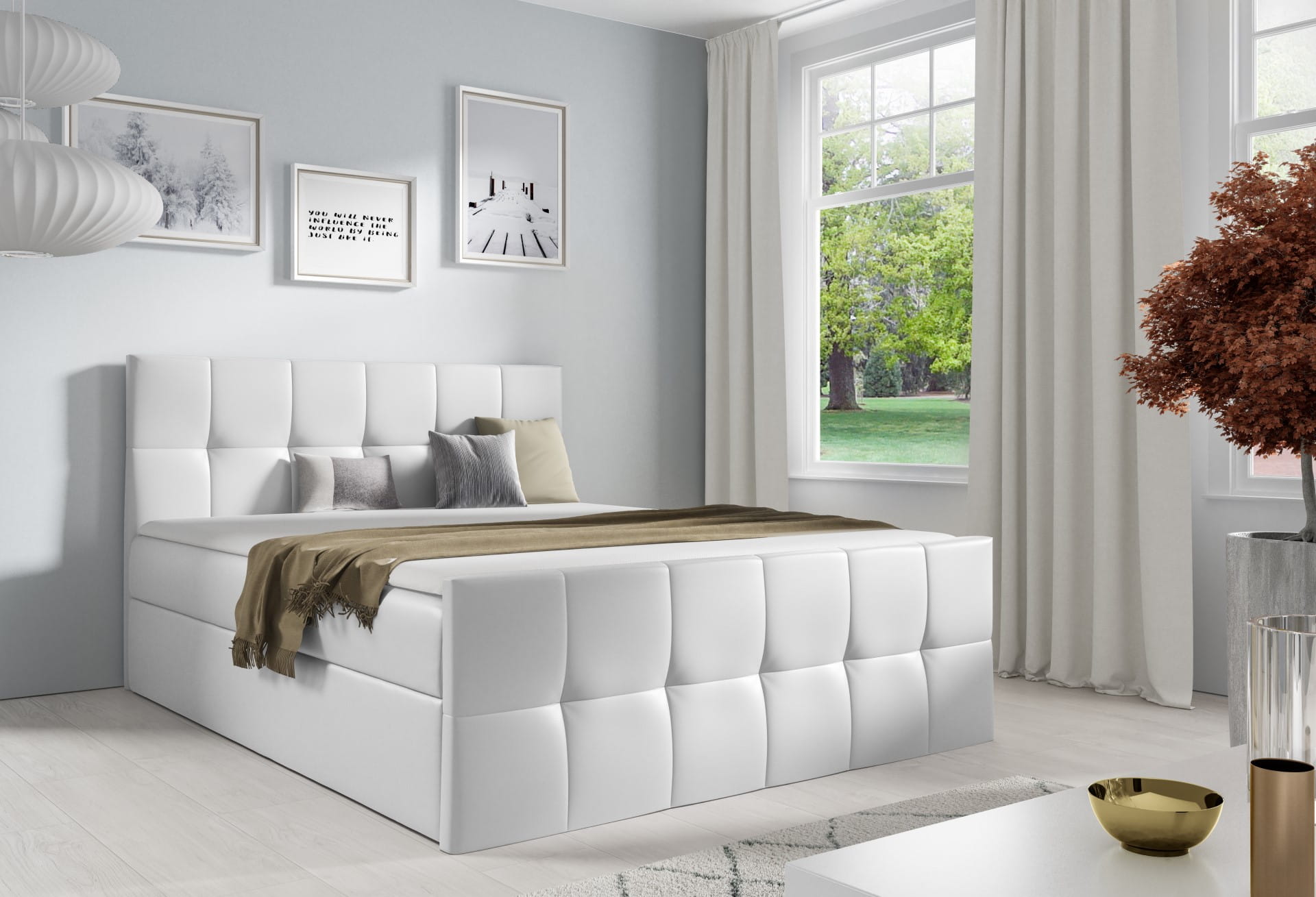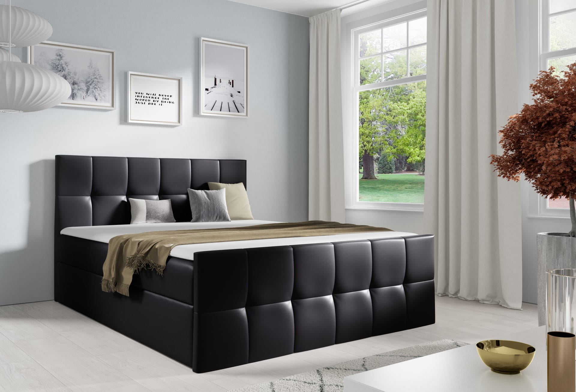- Łóżko Boxspring SZARLOT dzięki ozdobnym pikom na zagłówku i zanózku zachwyca oko.