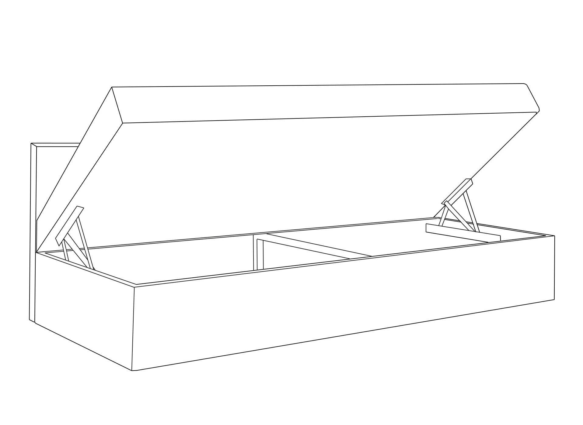 - Zaletą tego łóżka jest wbudowany pojemnik, który otwiera się za pomocą sprężynowego mechanizmu, ułatwiającego podnoszenie i schowanie drobnych rzeczy.