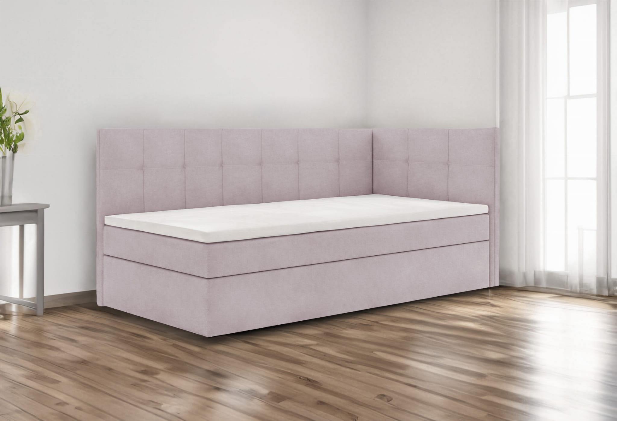 - Boxspring FELIX to elegancka i nowoczesna propozycja łóżka kontynentalnego, idealna do pokoju młodzieżowego lub niewielkiej sypialni.