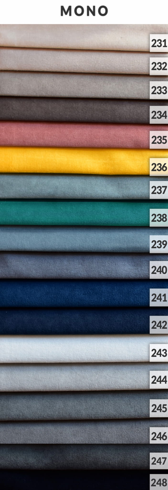 TKANINY ZA DOPŁATĄ MONO – tkanina meblowa typu velvet z powłoką hydrofobową, miękka i przyjemna w dotyku.