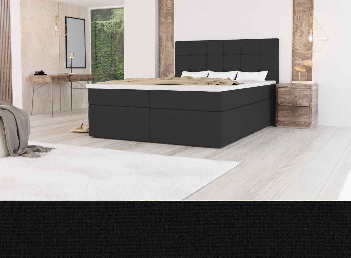 - Boxspring MERA to praktyczne łóżko wykonane z wysokiej jakości materiałów, które posiada dwa pojemniki na pościel.