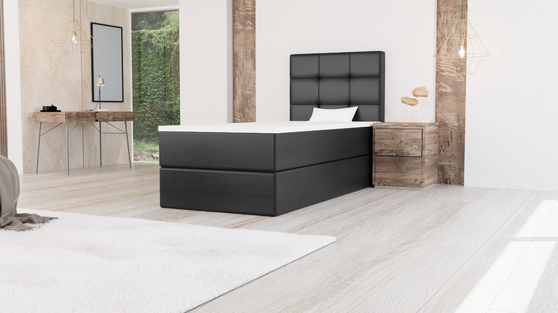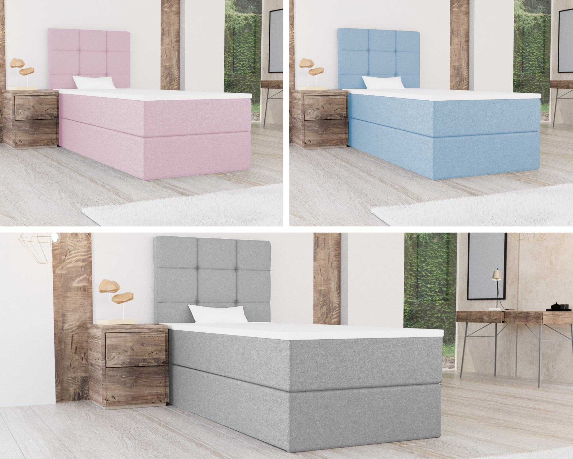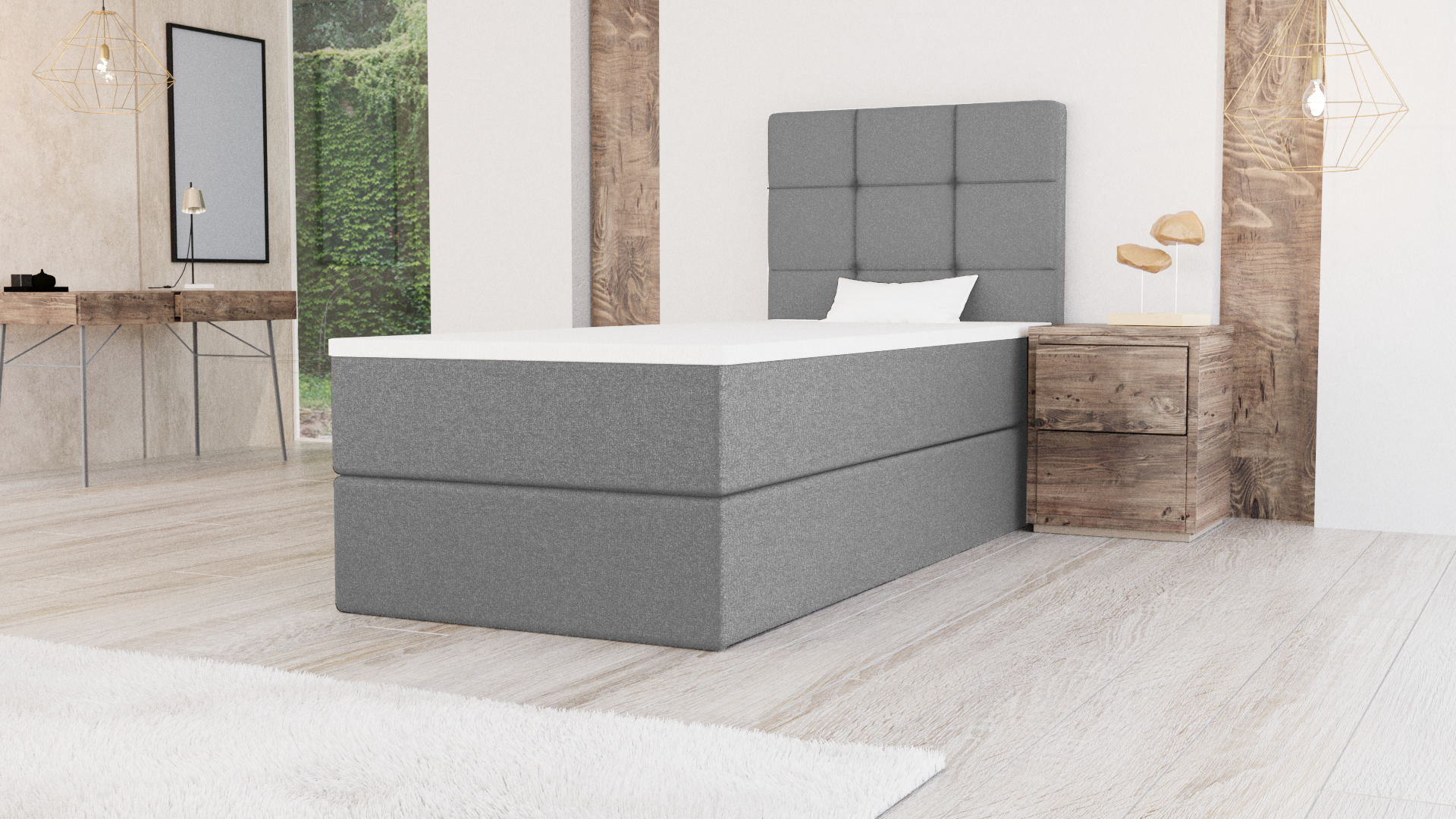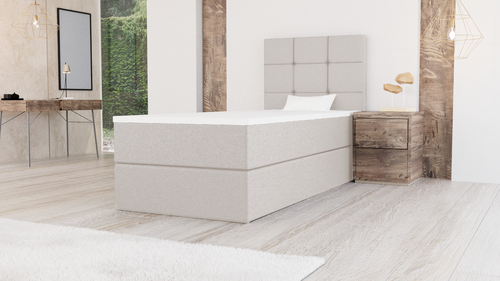 - Łóżko składa się z materaca wykonanego ze sprężyny typu bonell + pianki wysoko elastycznej T30, pojemnika na pościel otwieranego od przodu łóżka oraz automatu na sprężynach ułatwiający otwieranie pojemnika.