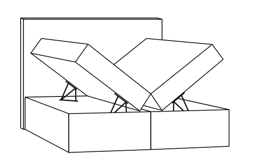 - Łóżko składa się z materaca górnego (topper) - pianka wysoko elastyczna 5 cm, materaca sprężyny kieszeniowe bonell + pianki T30 (twardość H3) oraz szuflad podnoszonych do góry z prawej i lewej strony.