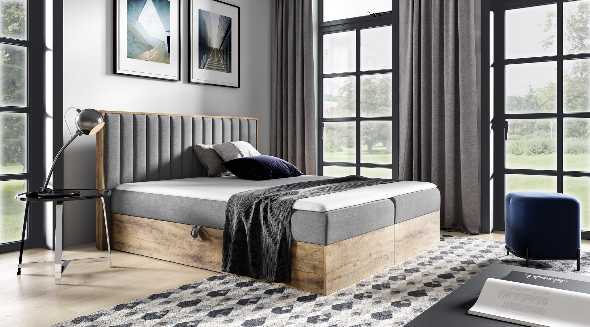 - Łóżka na wizualizacjach wykonane zostały z tkaniny FARO - dostępnej za dopłatą 199 zł