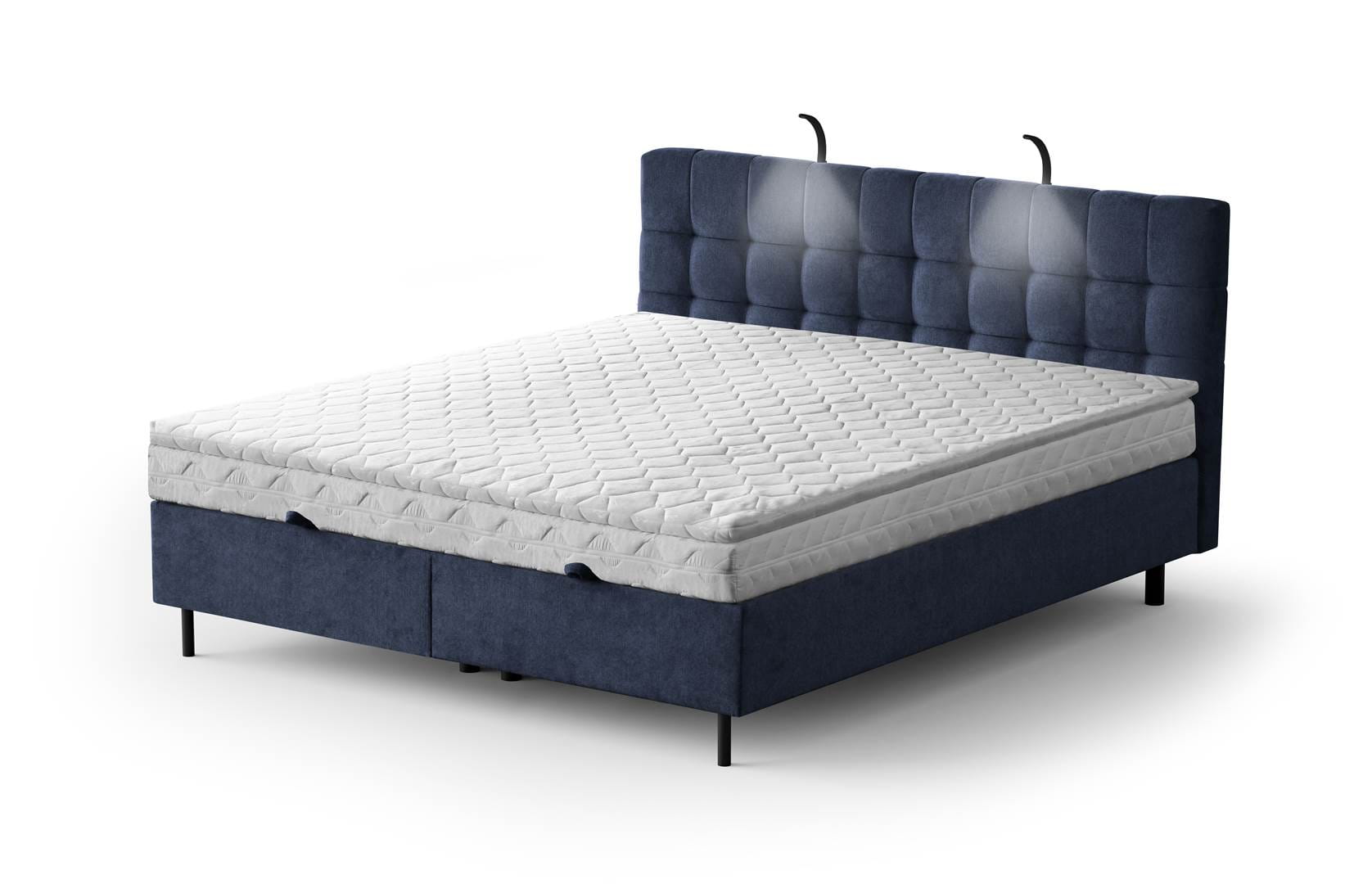 Zdjęcie poniżej prezentuje łóżko w tkaninie: DEEP BLUE – Aston 26