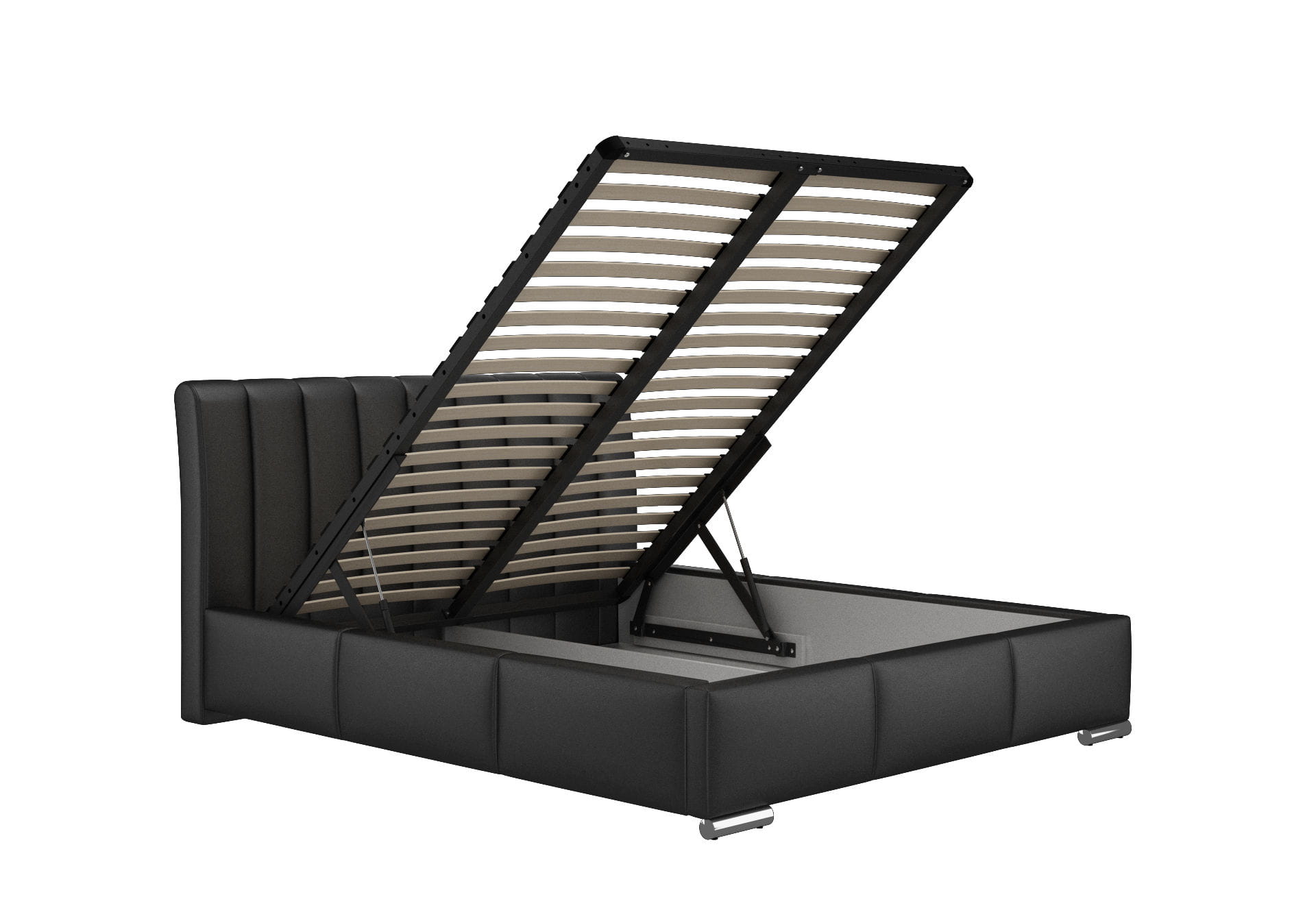 - duży pojemnik wykonany z białej płyty laminowanej - 34 listwy sprężynujące, stelaż metalowy, siłowniki gazowe 1000N (w standardzie)