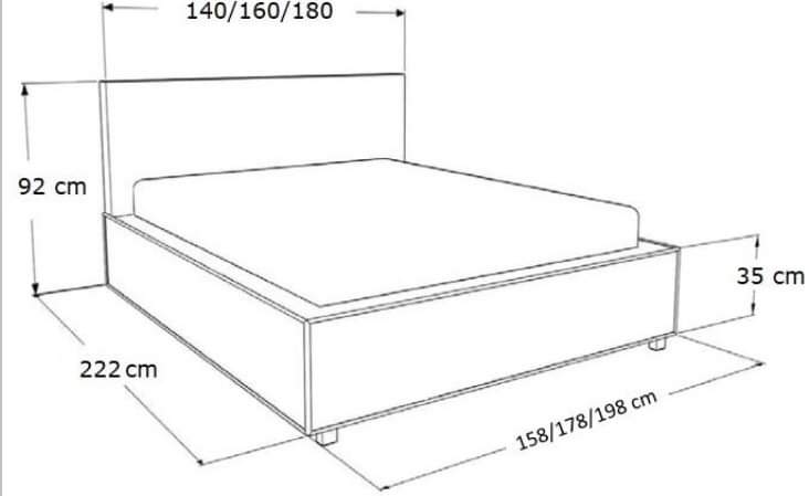 - Łóżko posiada stelaż metalowy z podnośnikiem gazowym. Stelaż składa się z 34 listew i siłowników gazowych o sile 1000N.