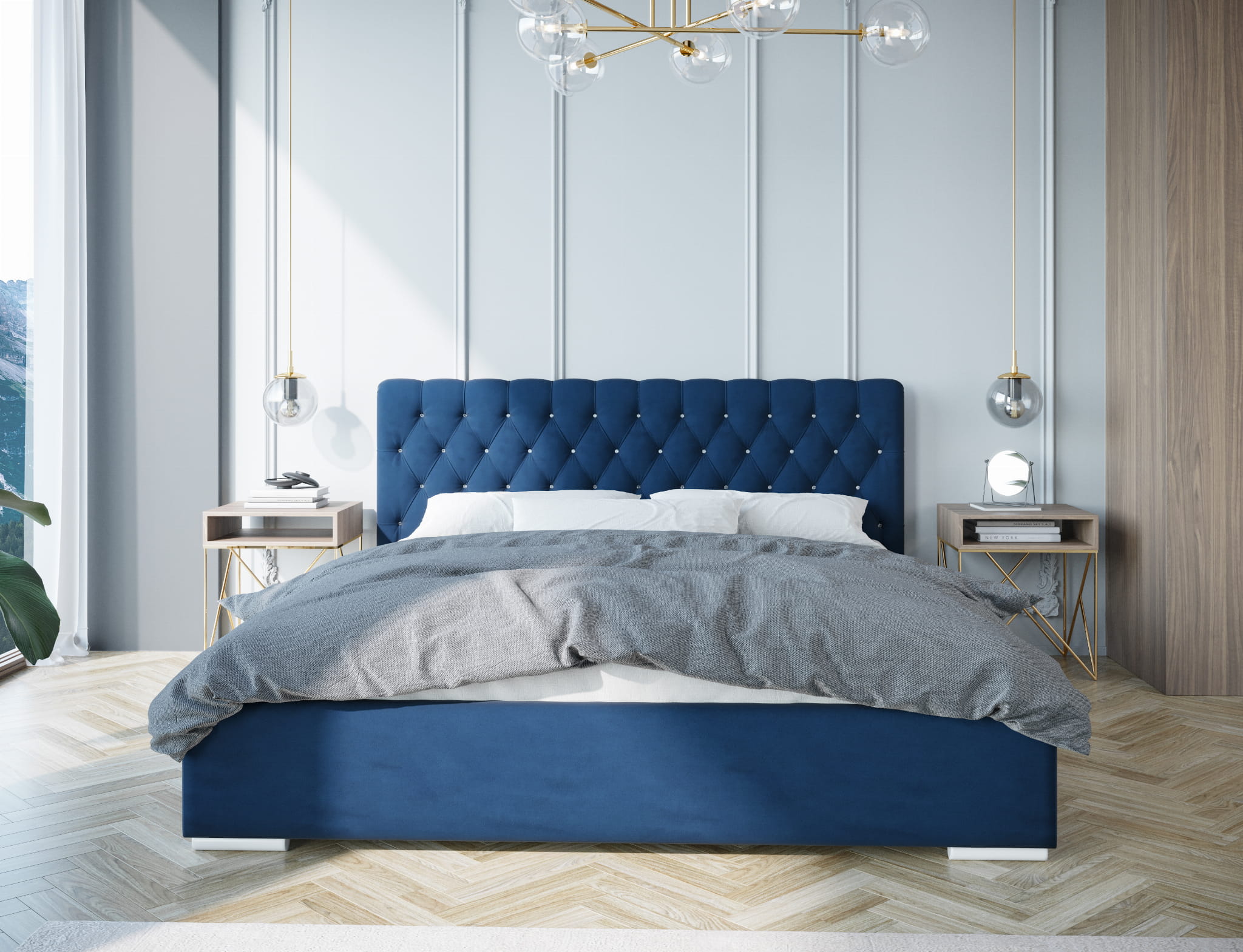 - W cenie podstawowej zagłówek posiada guziczki, natomiast za dopłatą 99 zł możemy zamienić je na kryształki widoczne na aranżacji.