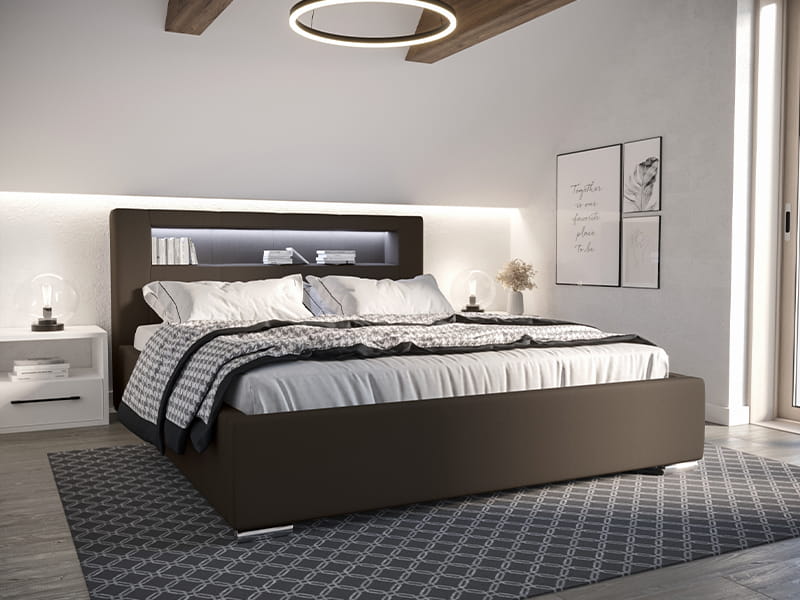 - Łóżko Tapicerowane z Oświetleniem LED Orion – to nasza propozycja dzięki której Twoja sypialnia nabierze zupełnie nowego charakteru. Bezsprzecznie łóżko wyposażone w półkę z taśmą LED będzie niezwykłą ozdobą sypialni.