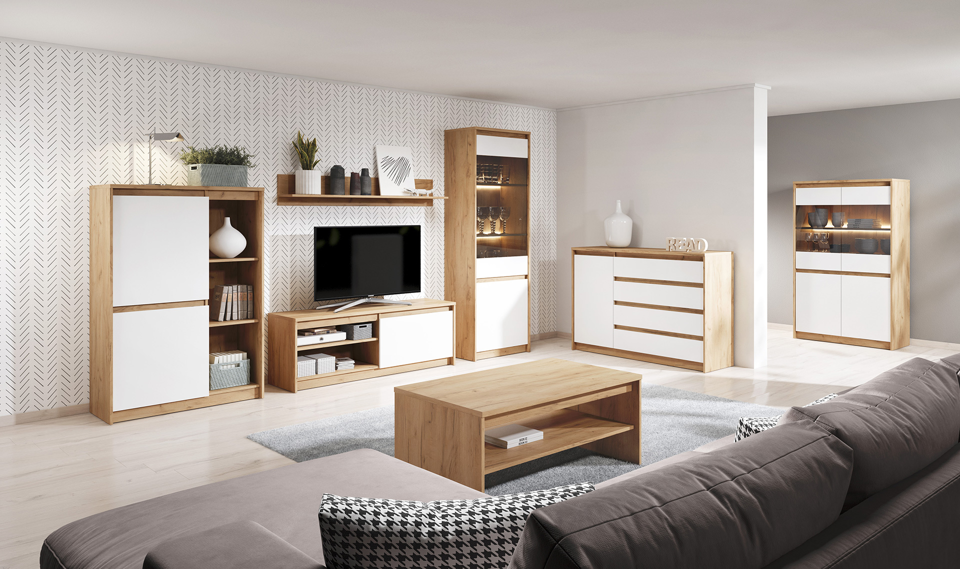 - Połączenie naturalnej kolorystyki dębu craft złotego ze spokojną bielą rozjaśni Twoja sypialnię.