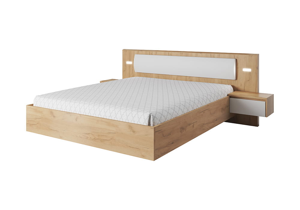 - Łóżko w zestawie ze stolikami nocnymi oraz oświetleniem LED.