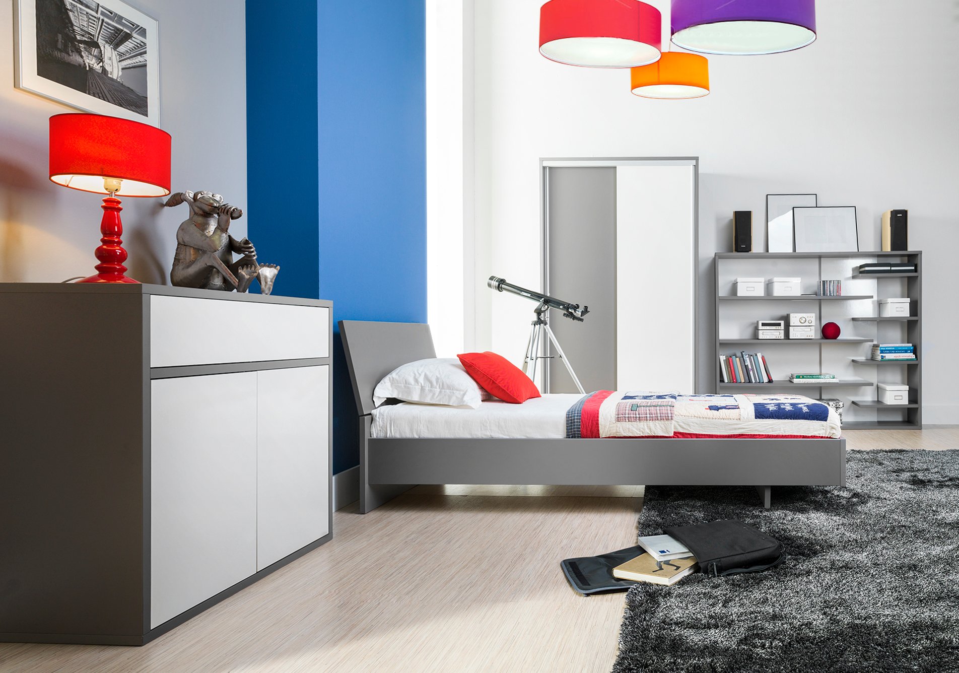 - Poza tym w skład sytemu wchodzą również komody (z szufladami otwieranymi dotykowo), wygodne łóżko czy pojemna szafa.