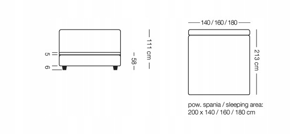 - Łóżko składa się z warstw: Topper o grubości 5 cm ( pianka Visco ), materac bonell + pianka T28/30, dwa pojemniki na pościel.