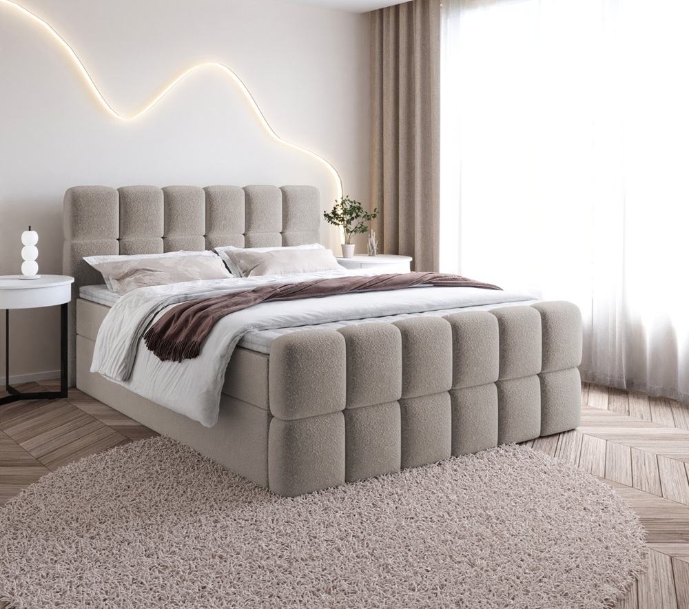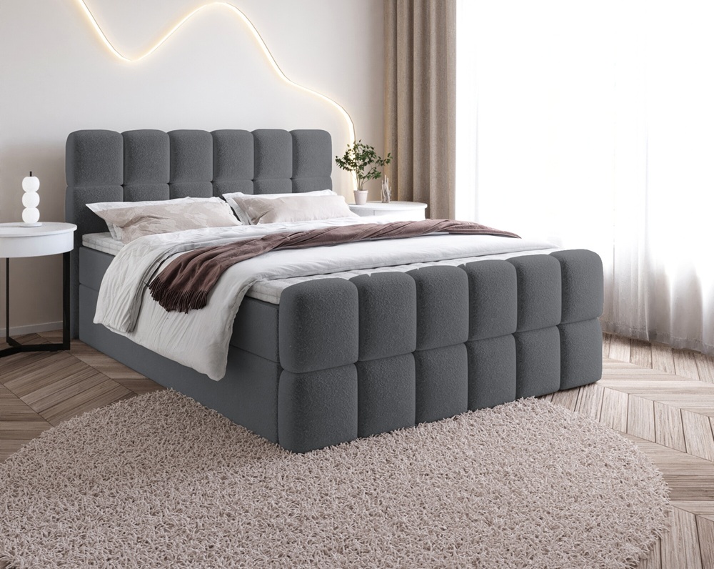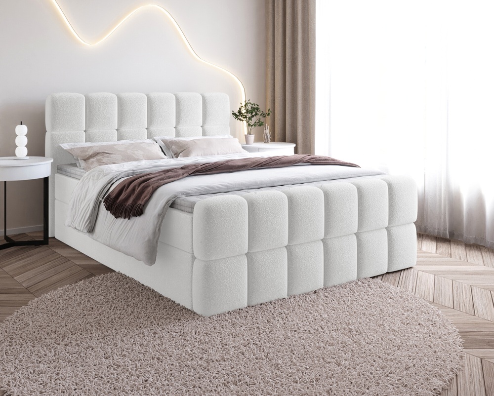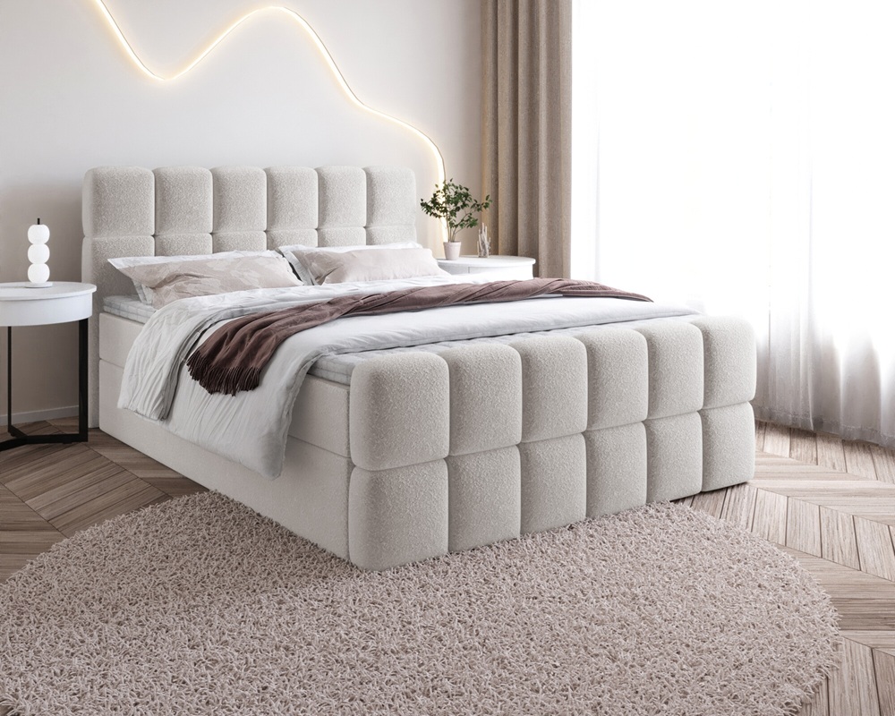 Łóżko Sela – nowoczesne łóżko tapicerowane z tkaniną bouclé