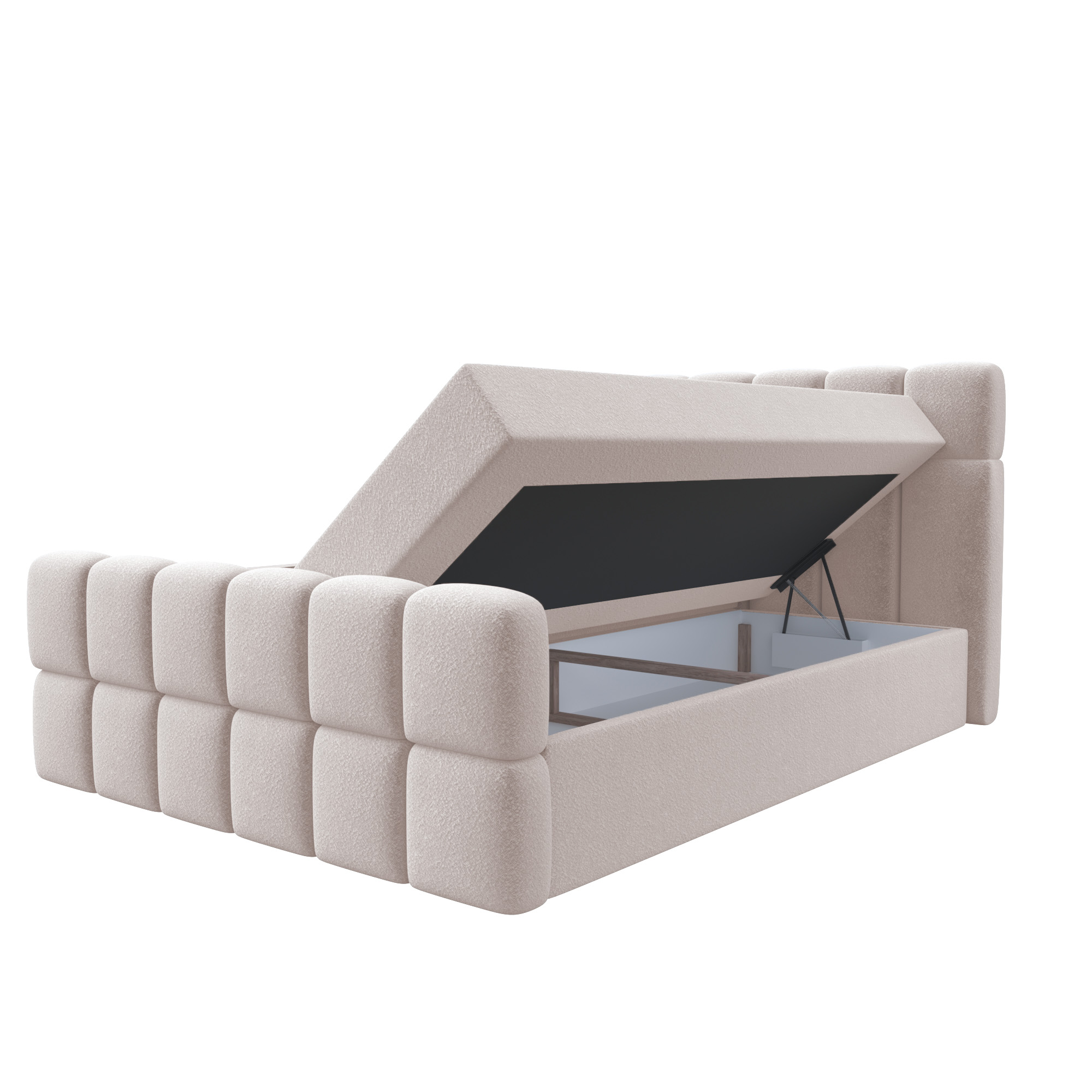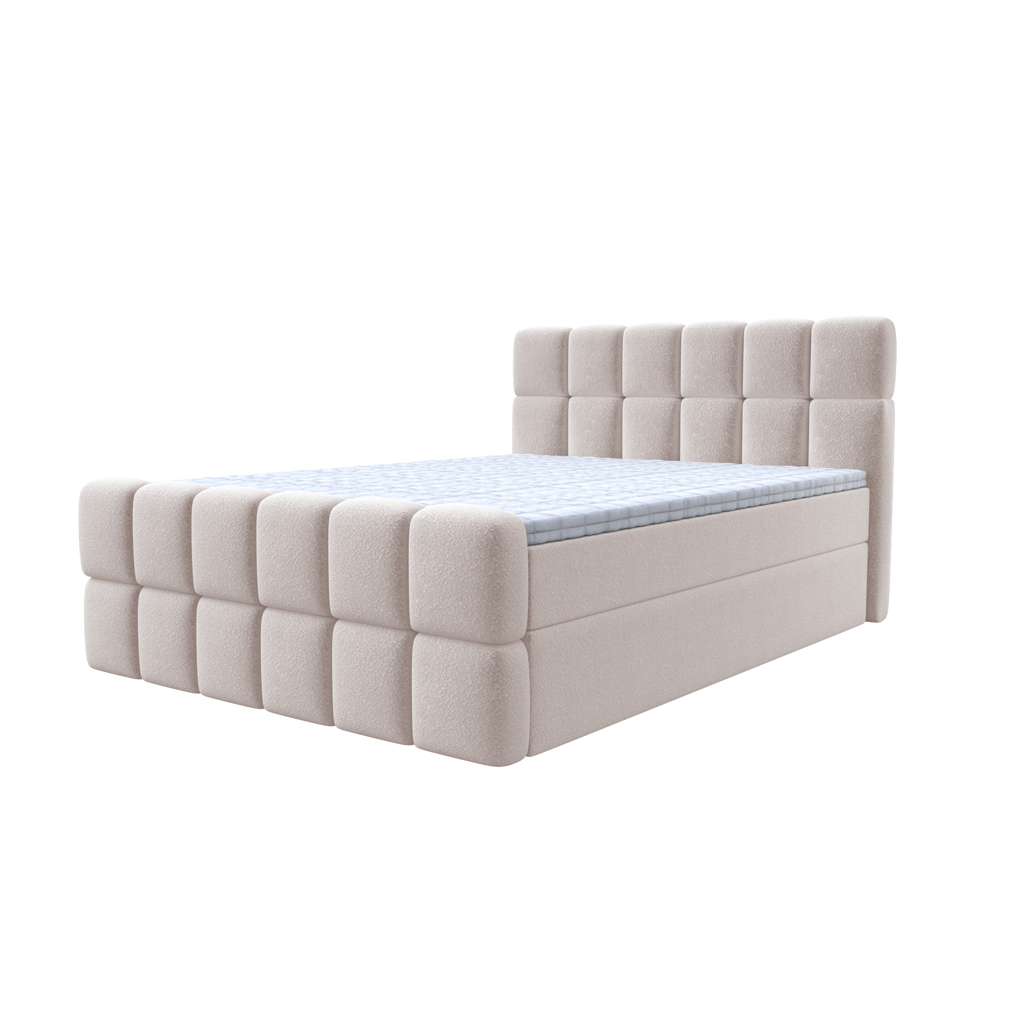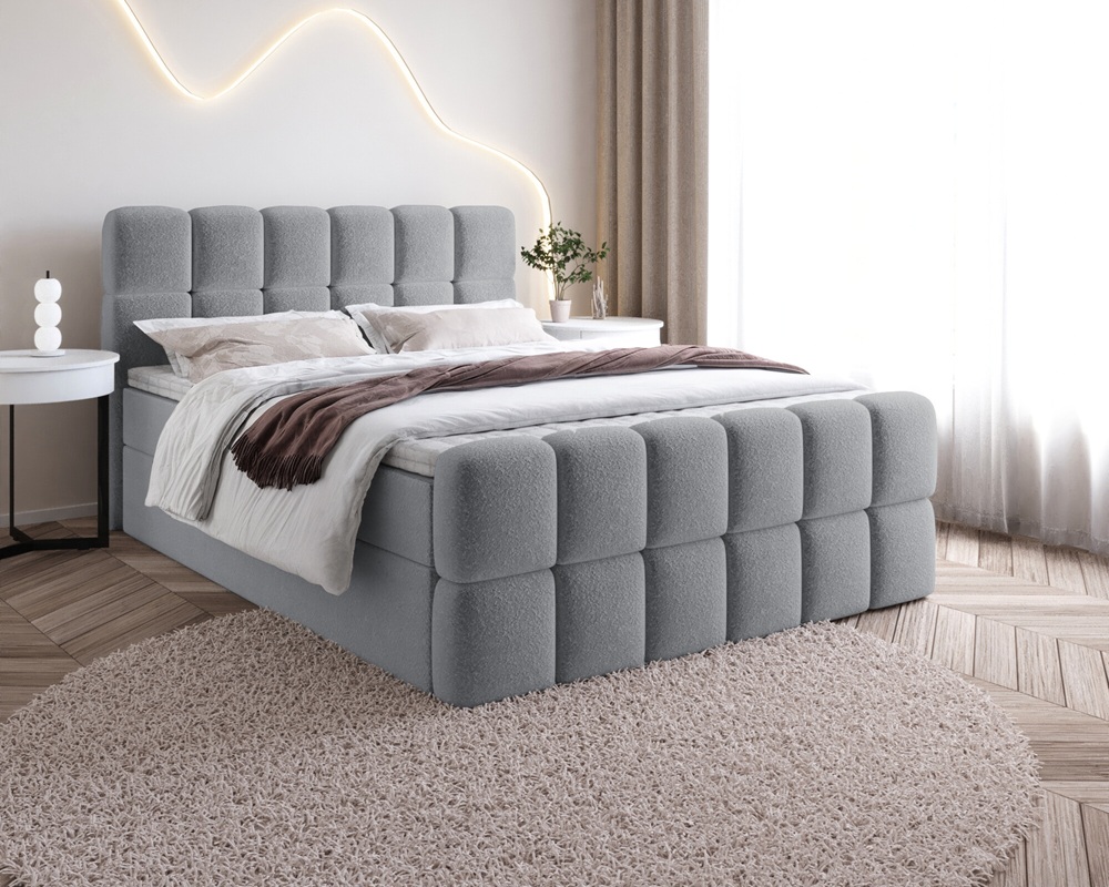 Łóżko Sela – nowoczesne łóżko tapicerowane z tkaniną bouclé