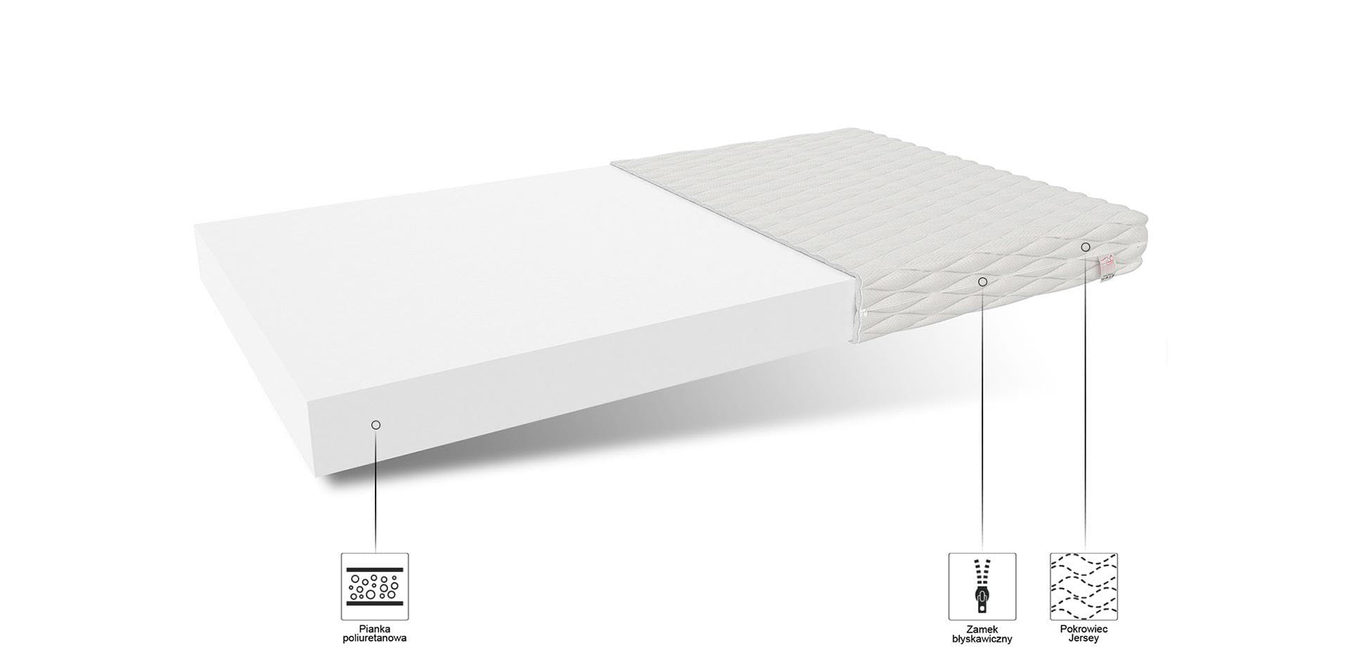 - Materac nie odkształca się, dzięki czemu jest bardzo wygodny i gwarantuje komfort spania. Wysoka jakość pianki daje bardzo dobre podparcie dla kręgosłupa.