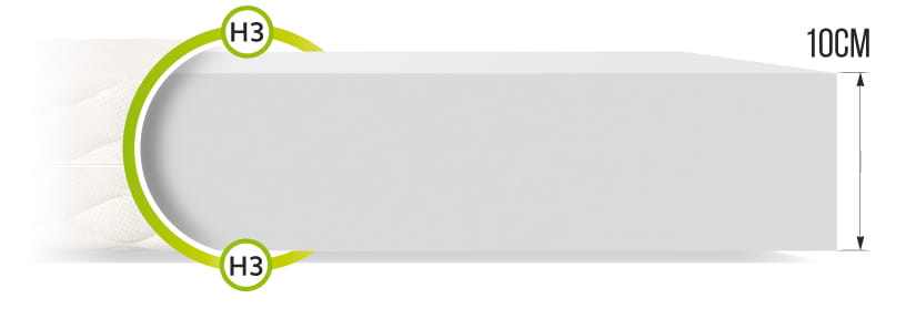 - Bazę materaca stanowi pianka poliuretanowa T25, o podwyższonej wytrzymałości i dobrej przepuszczalności powietrza. Zapewnia świetną izolację termiczną.