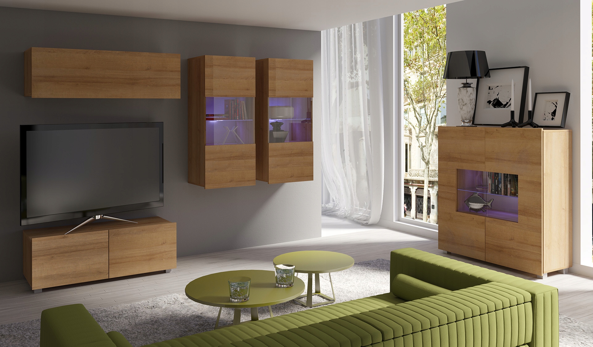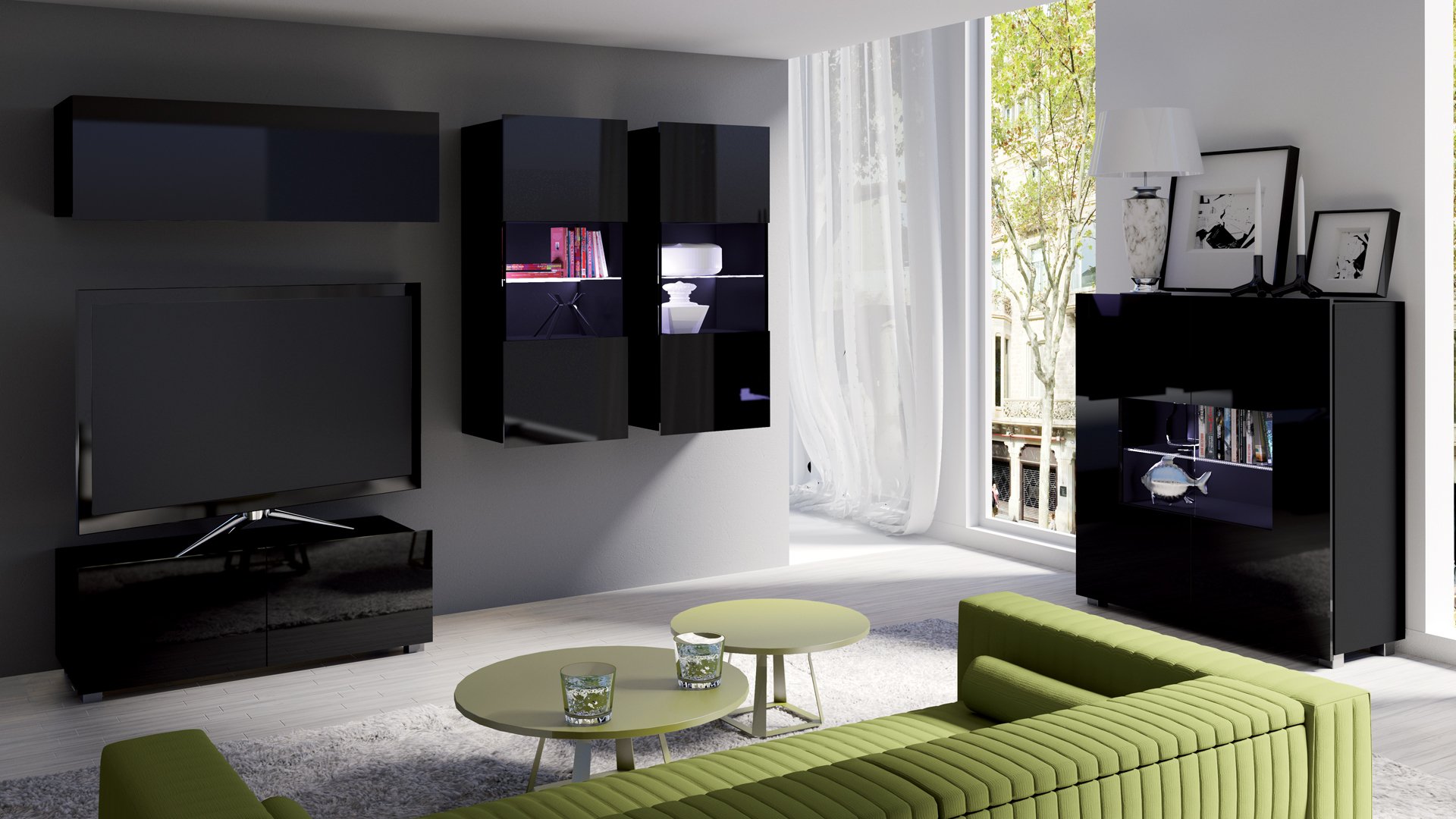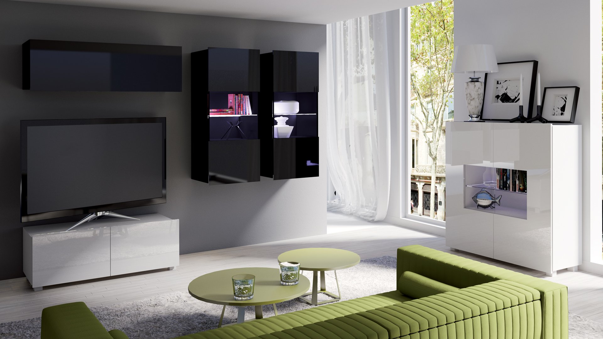 - Zestaw składa się z: 2 x witryna wisząca, 1 x stolik RTV 100 , 1 x półka wisząca
