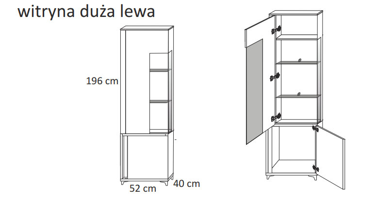 - Meblościanka składa się z: witryna duża lewa, komoda 180 oraz szafa