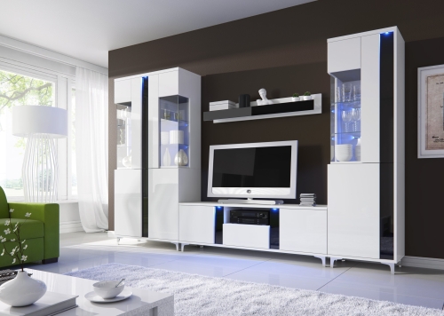 - Meblościanka składa się z: witryna duża stojąca, witryna 50 prawa stojąca, stolik RTV 150 oraz półka
