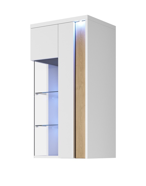 KORPUS: Biały, FRONT: Biały Połysk + Okleina naturalna