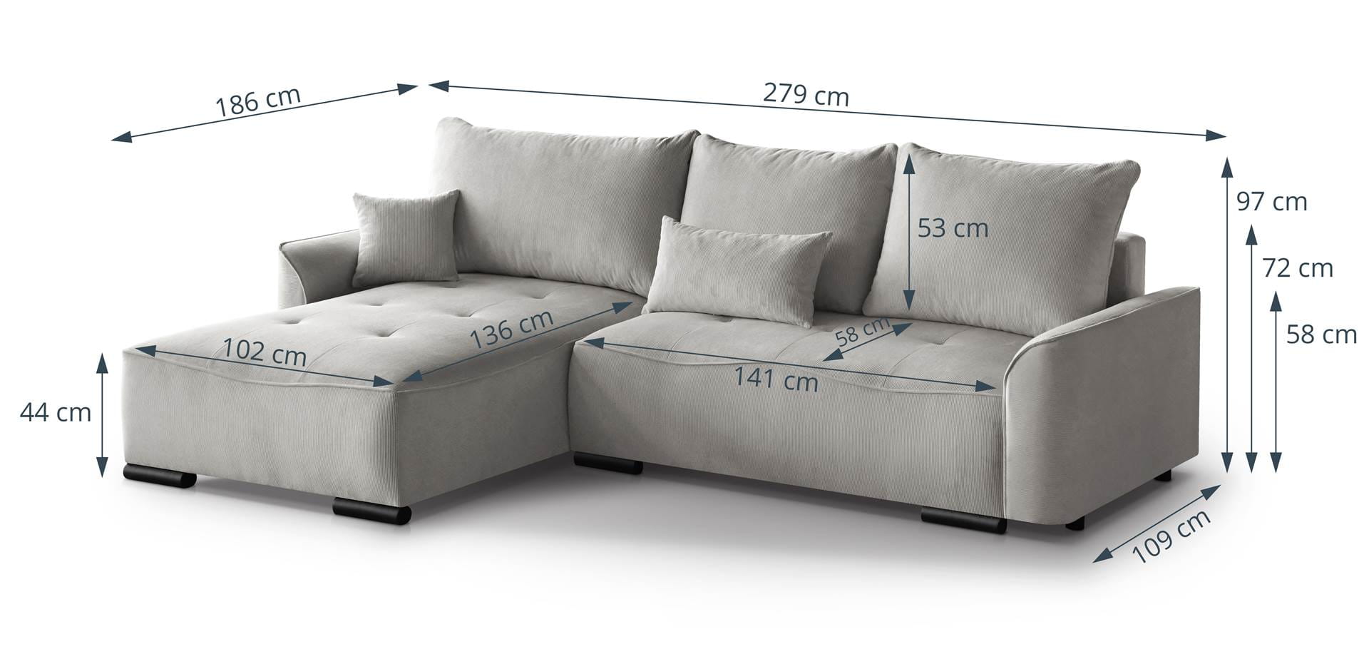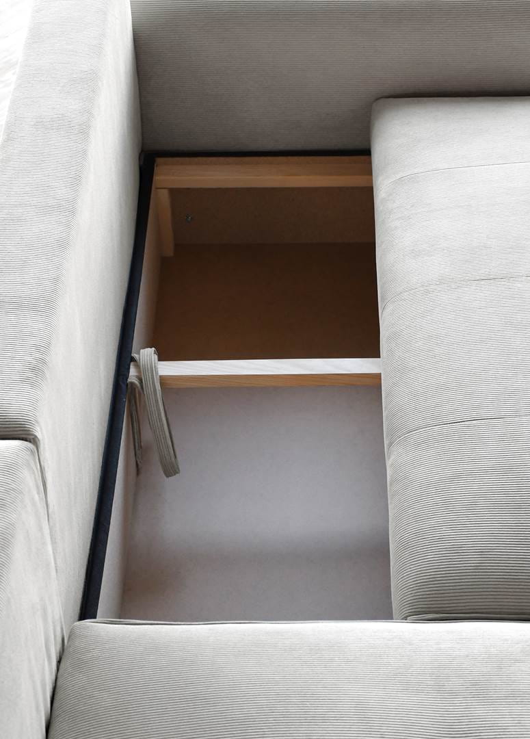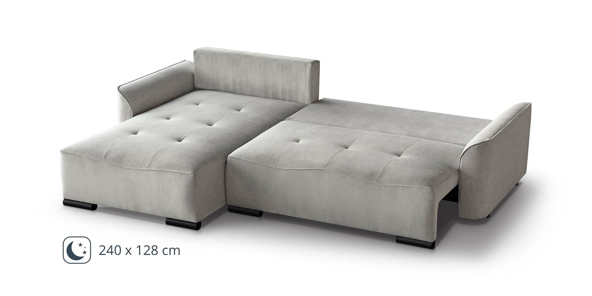 - Nowoczesny design oraz funkcja spania z pojemnikiem na pościel.