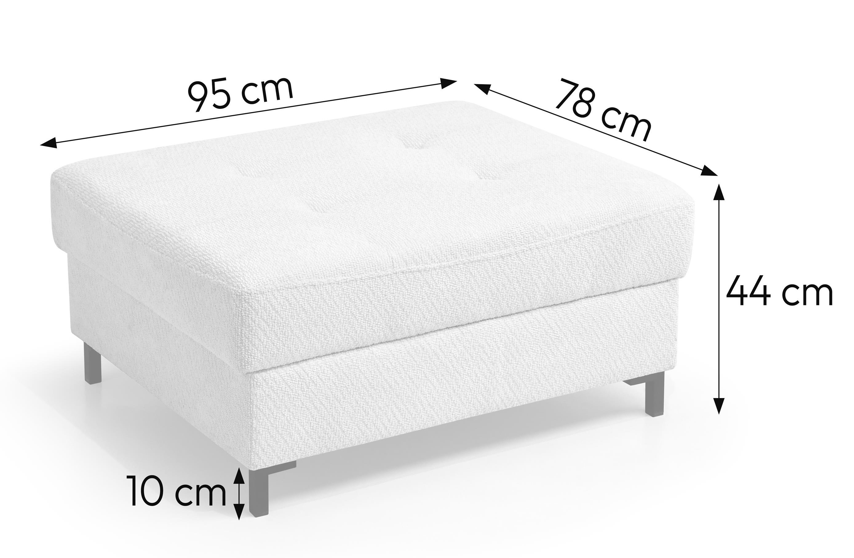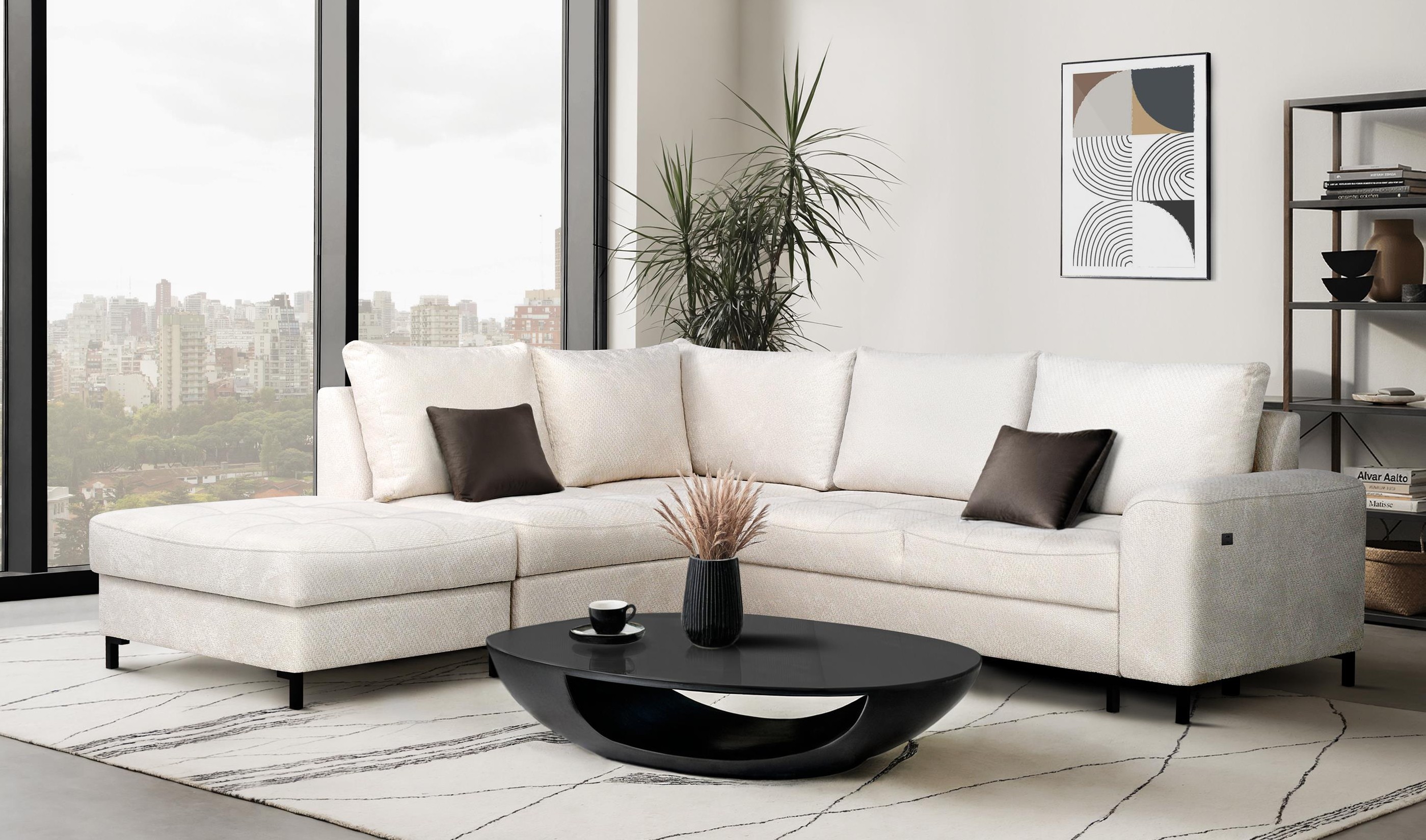 Stylowy i komfortowy narożnik w kształcie litery L to idealne rozwiązanie do nowoczesnych wnętrz. Wyposażony w praktyczną, otwieraną pufę, oferuje dodatkową przestrzeń do przechowywania, zachowując elegancki i nowoczesny wygląd.