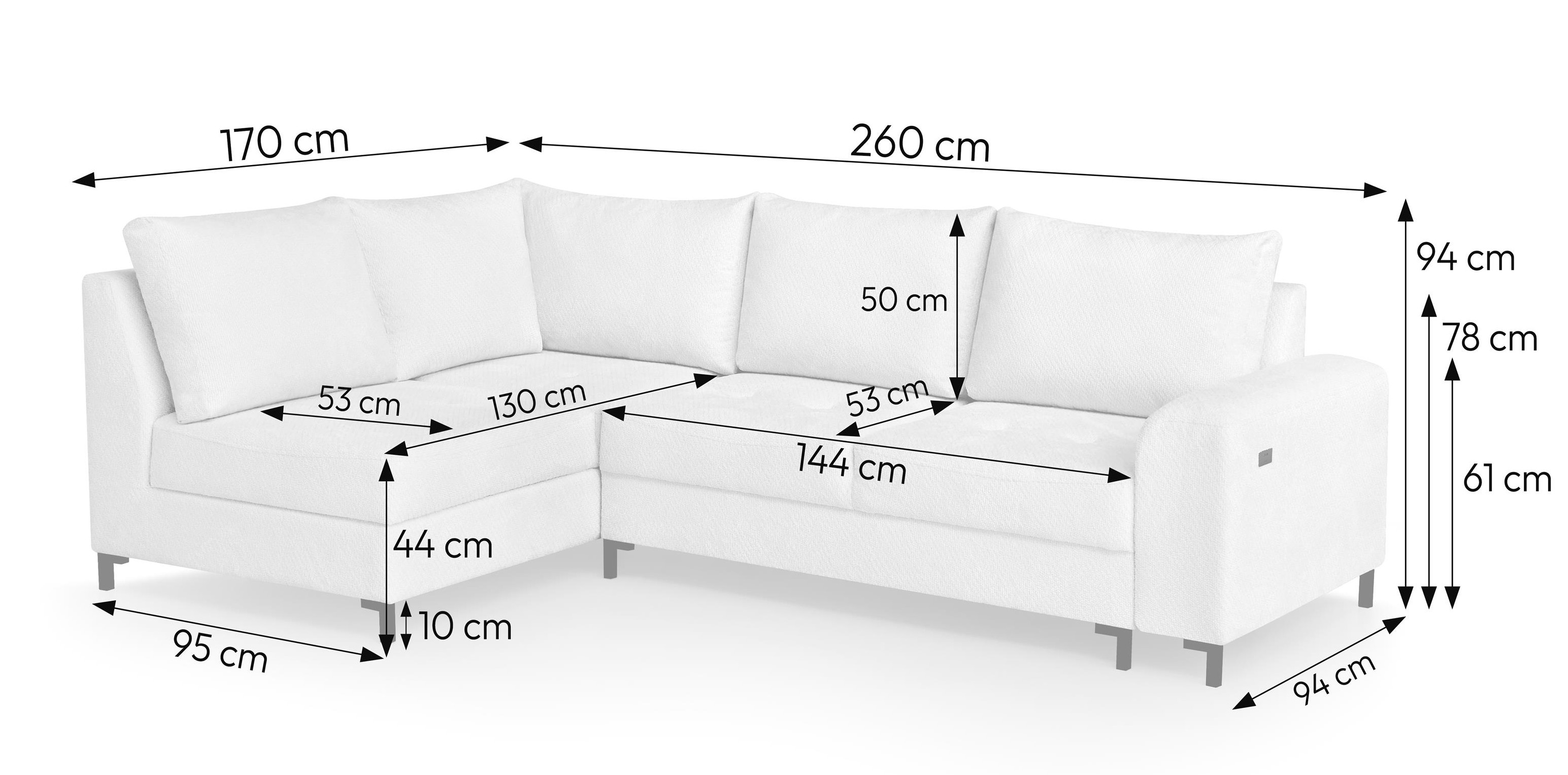 Koniec z szukaniem gniazdka i plączącymi się kablami! Dzięki wbudowanemu portowi USB możesz wygodnie ładować telefon, tablet czy inne urządzenia, siedząc wygodnie na narożniku. To detal, który znacząco zwiększa funkcjonalność mebla i sprawia, że Twój salon staje się jeszcze bardziej przyjazny do relaksu, pracy i codziennego życia.