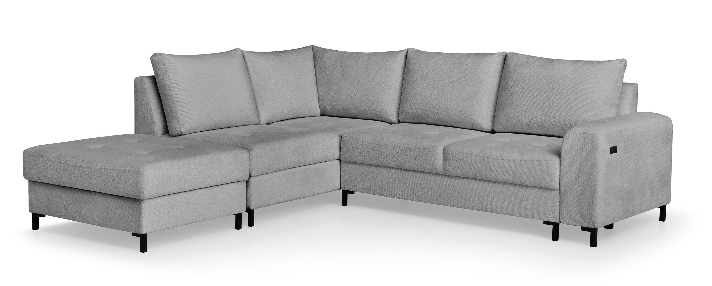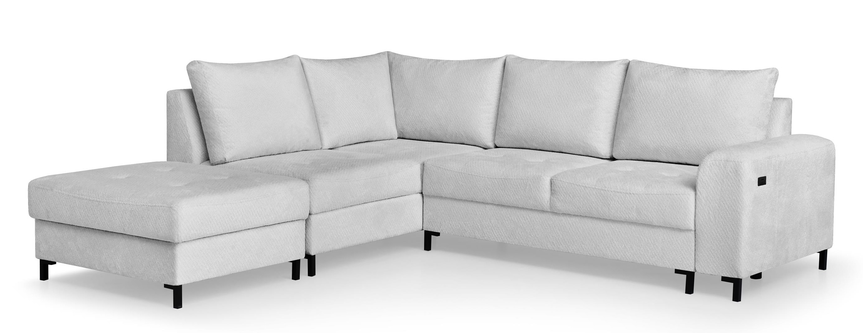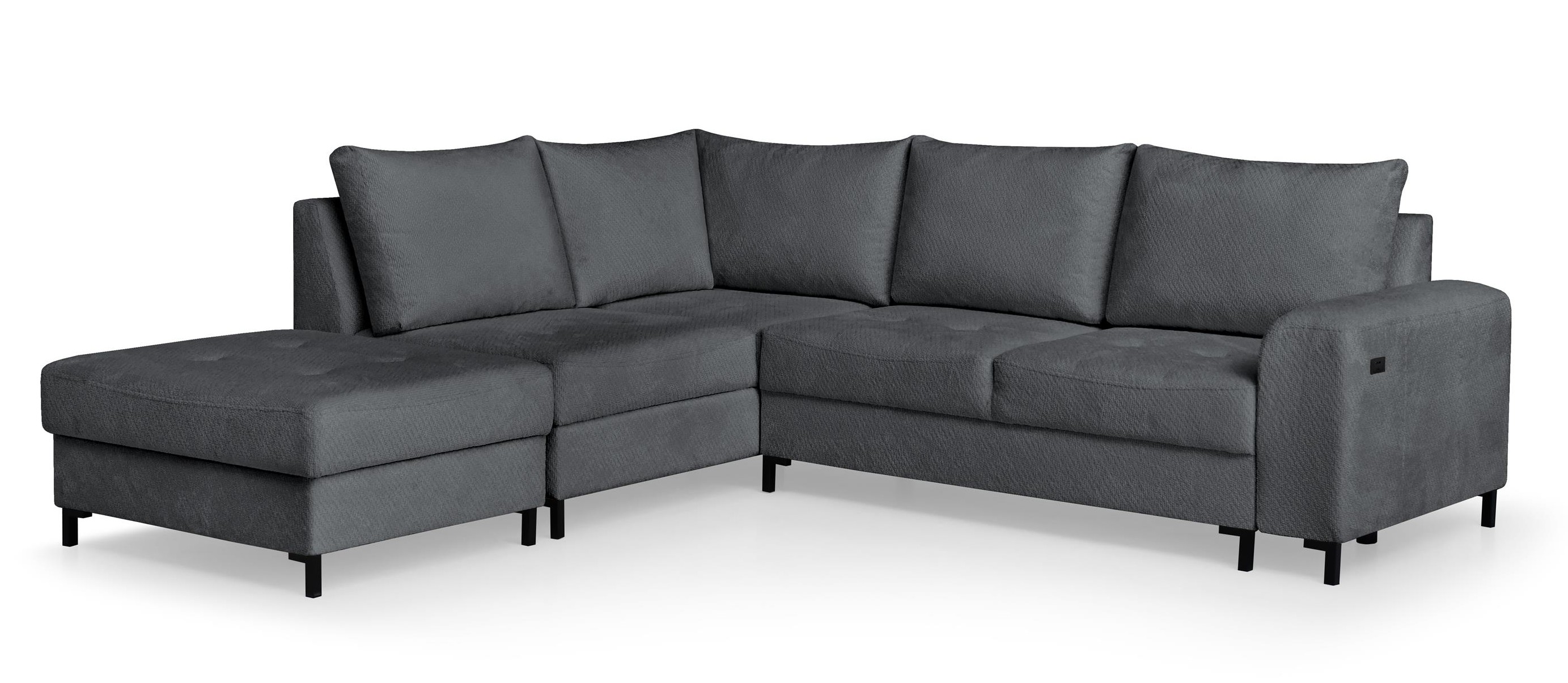 Nowoczesny Narożnik z funkcjonalną pufą i portem USB
