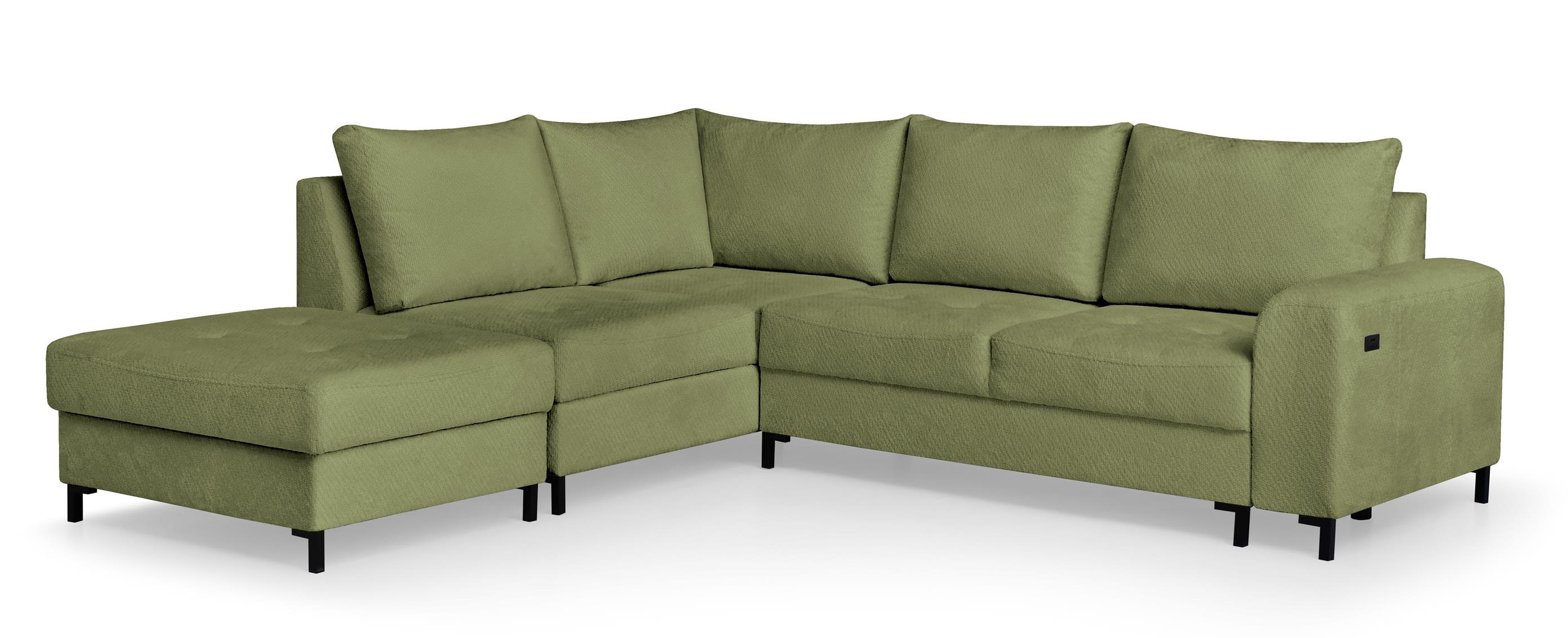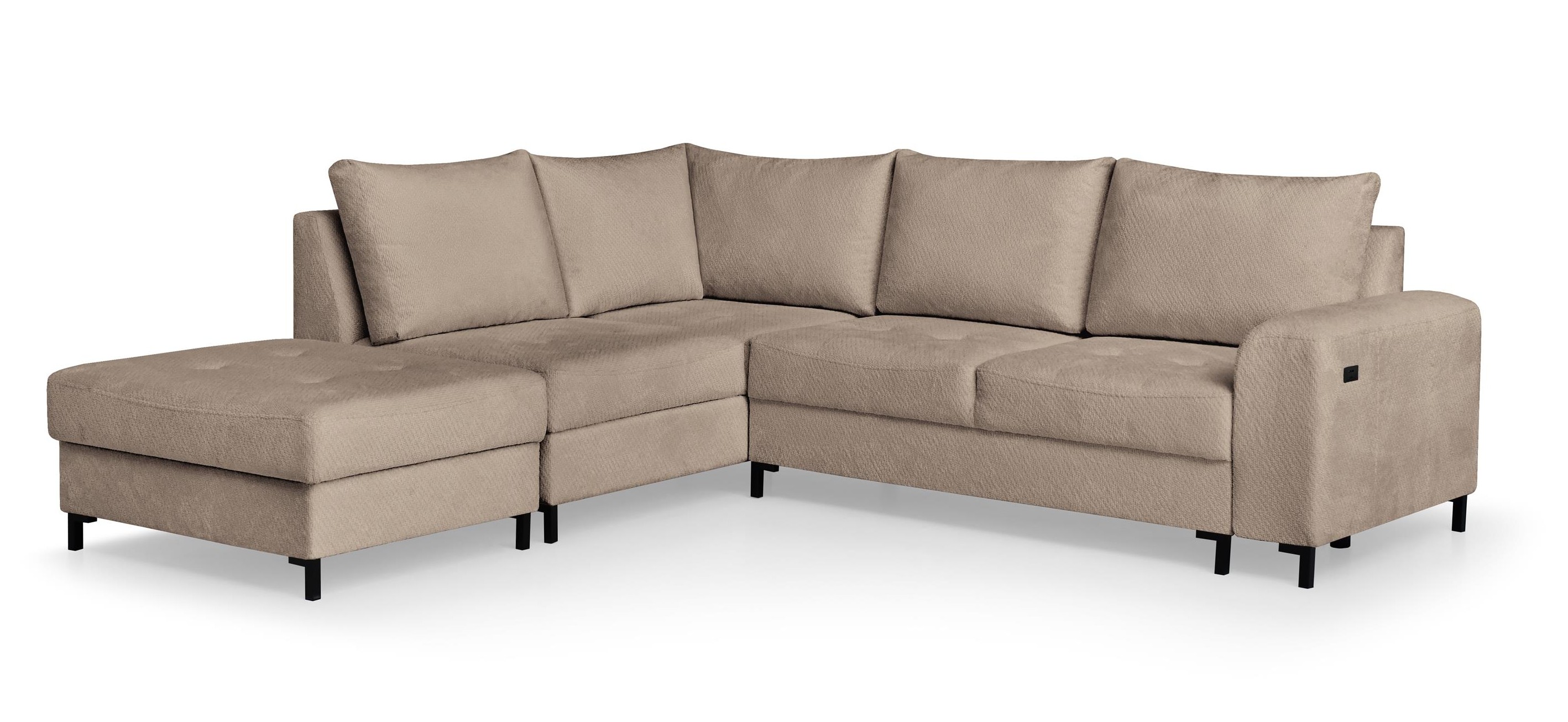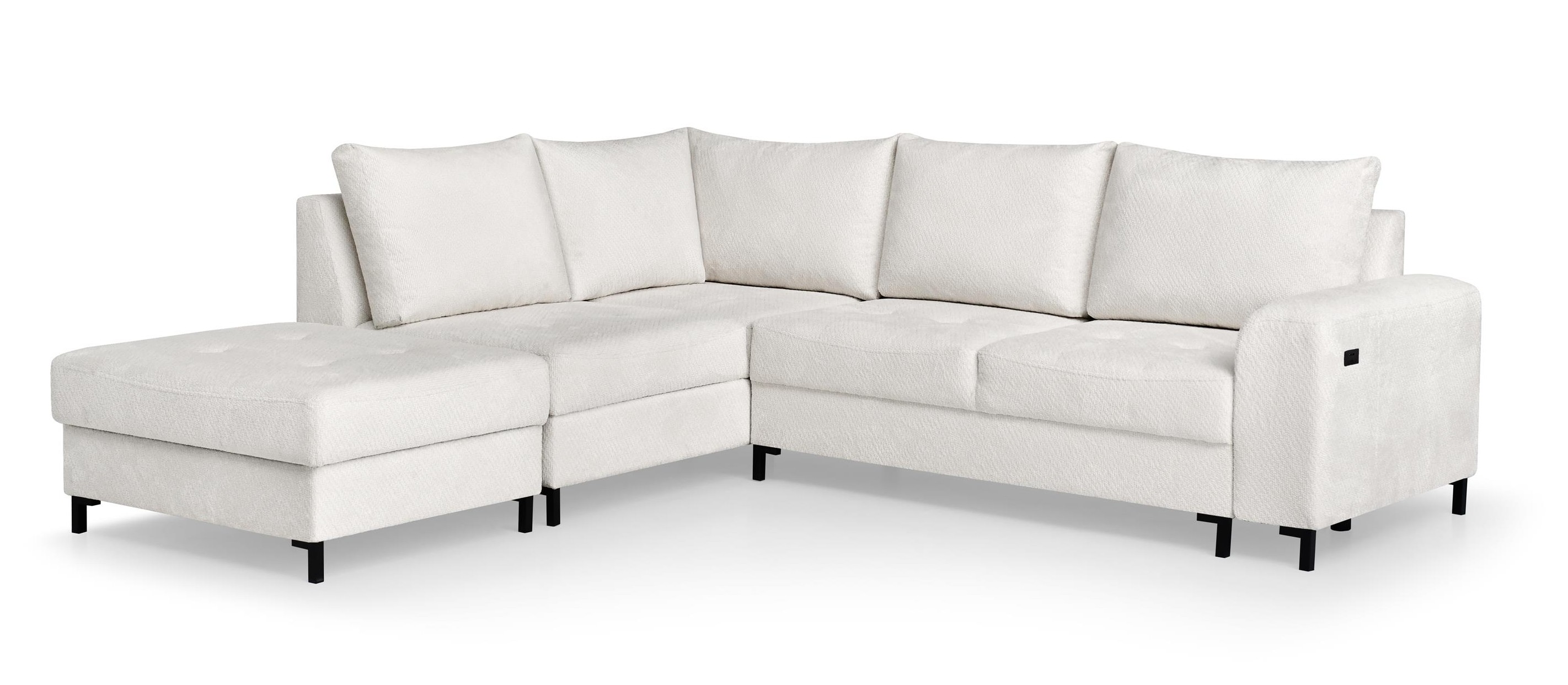 Nowoczesny Narożnik z funkcjonalną pufą i portem USB